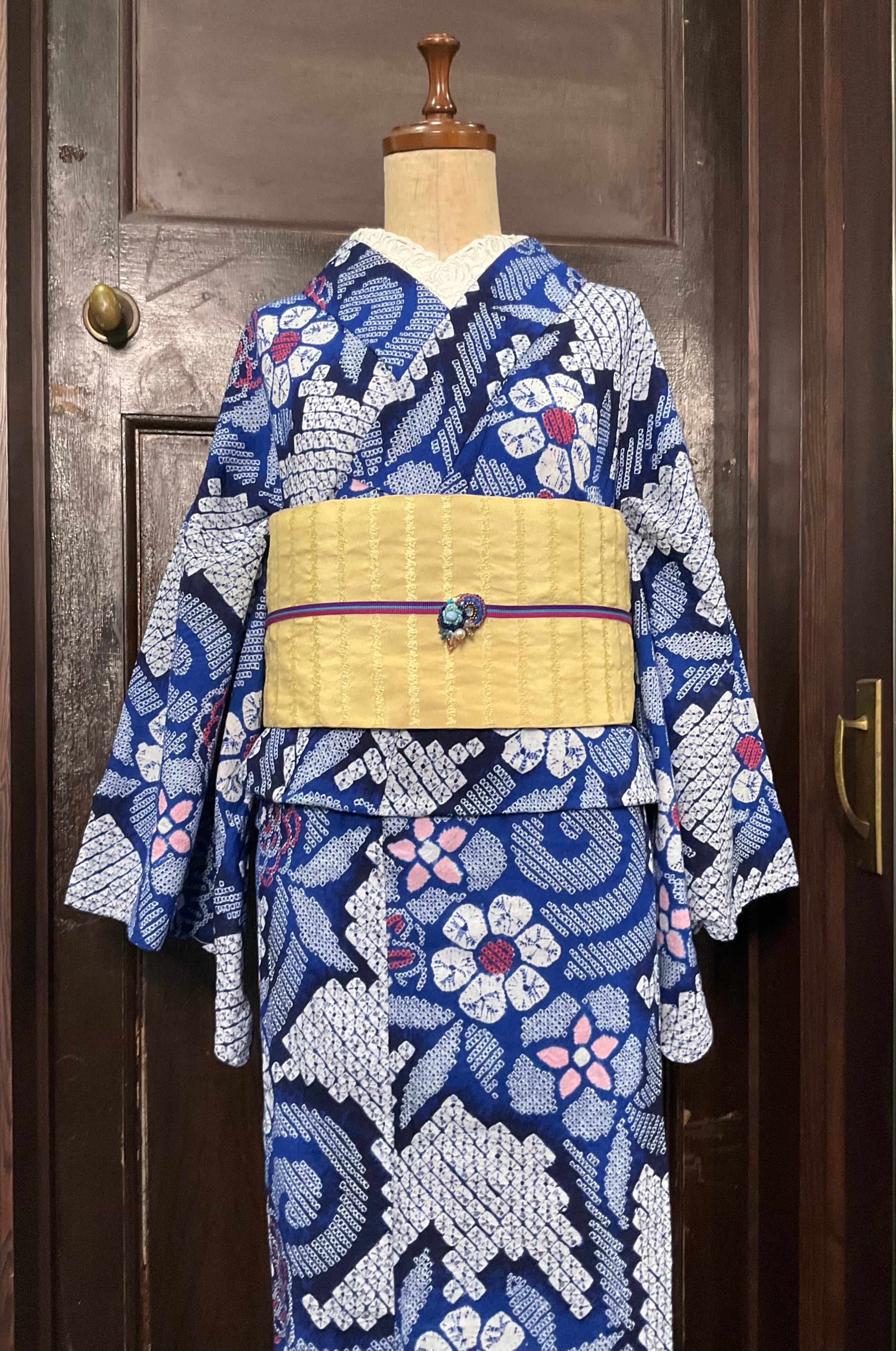 long*花、風に舞う*有松鳴海絞り浴衣 A345