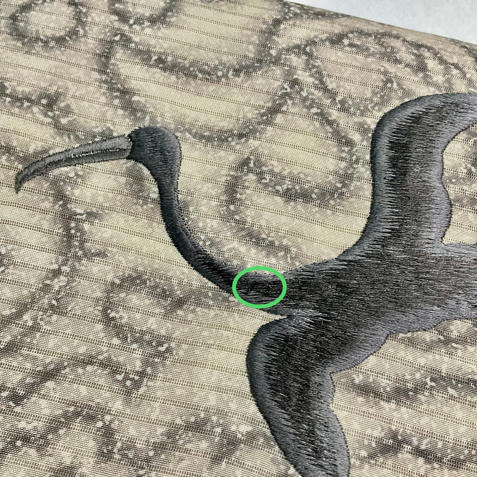 お太鼓の刺繍に糸の引きつれ。