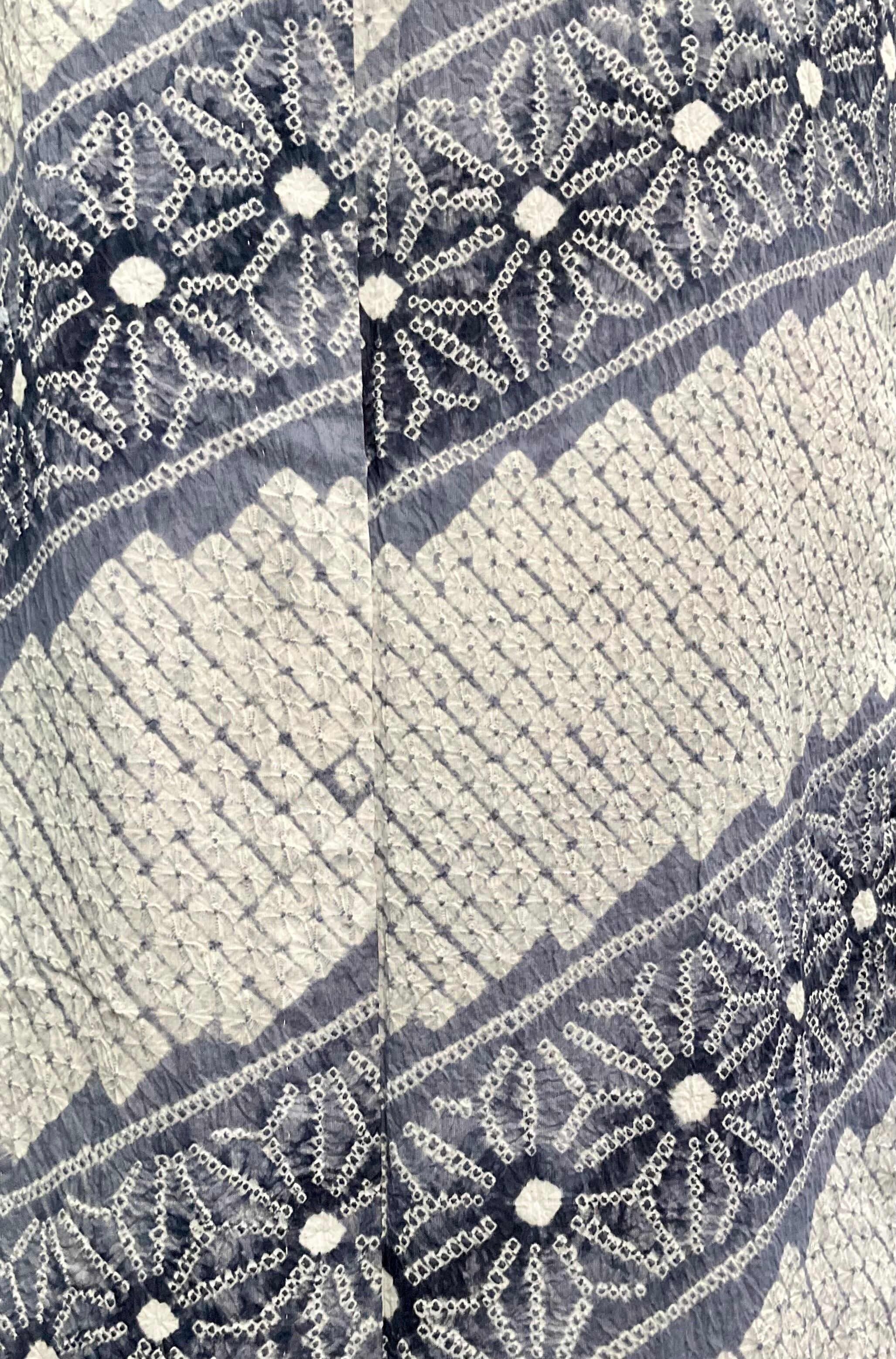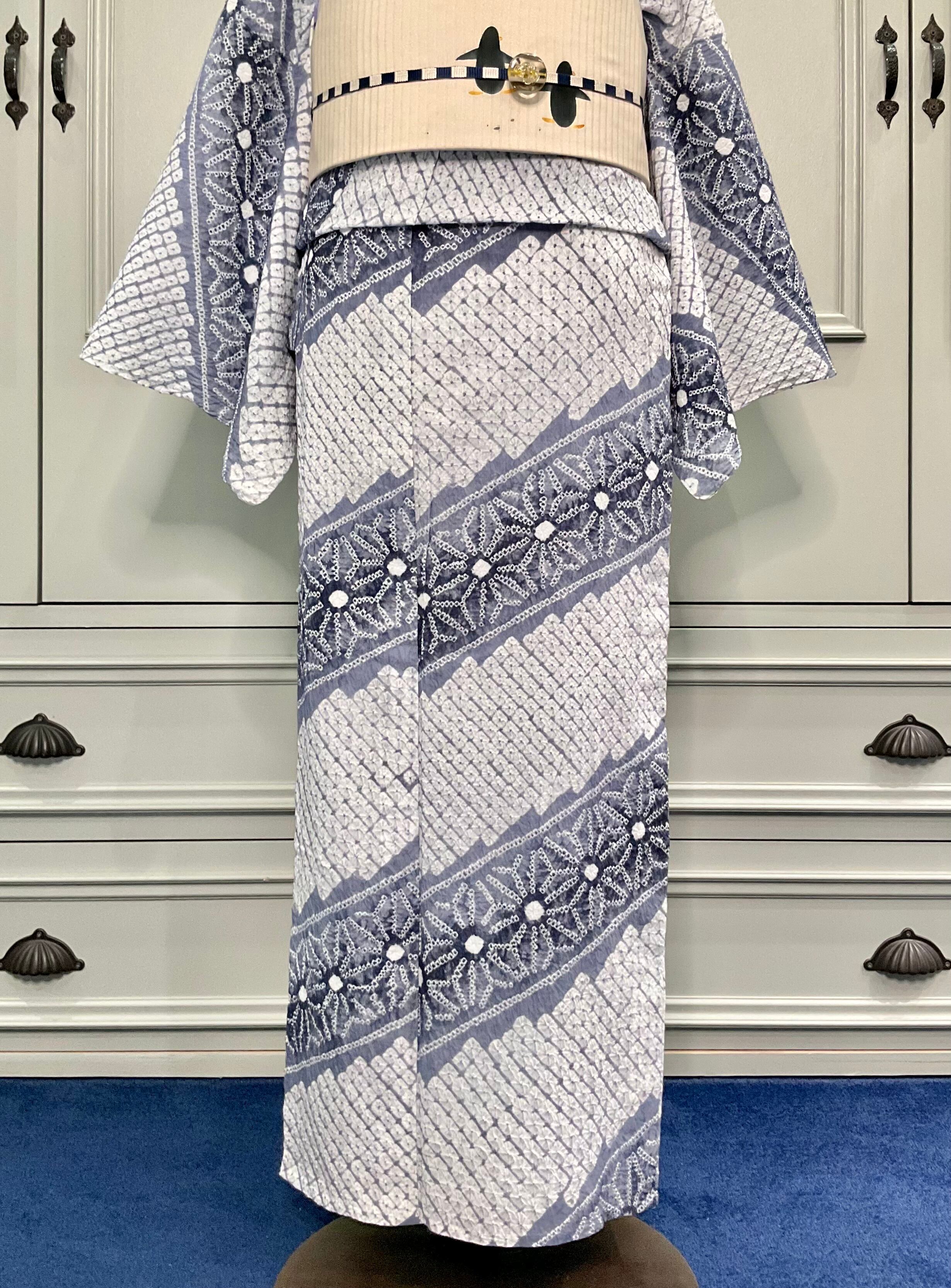 グレー地に、氷の結晶のような麻の葉模様が美しい有松鳴海絞り浴衣です♪