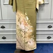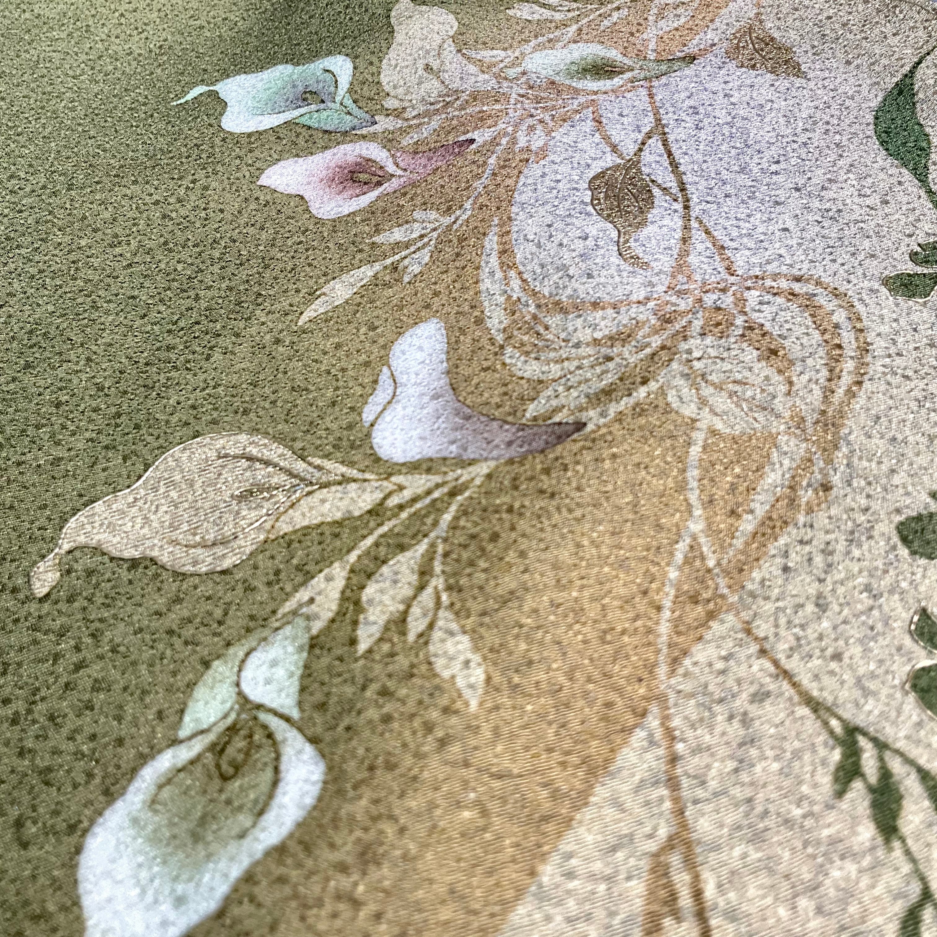 未使用 訪問着 鶯色 洋花 リサイクル現代モノ 訪問着 A390