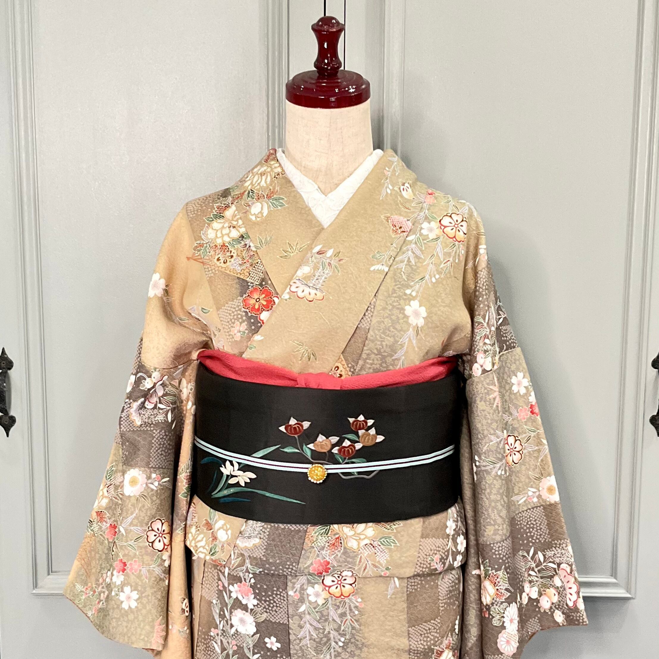 アンティーク着物はもちろんですが、現代モノのシックな着物との相性もよく、小物使いもどんなカラーでも合わせやすいので、自分のカラーを出せる帯になりそうですね