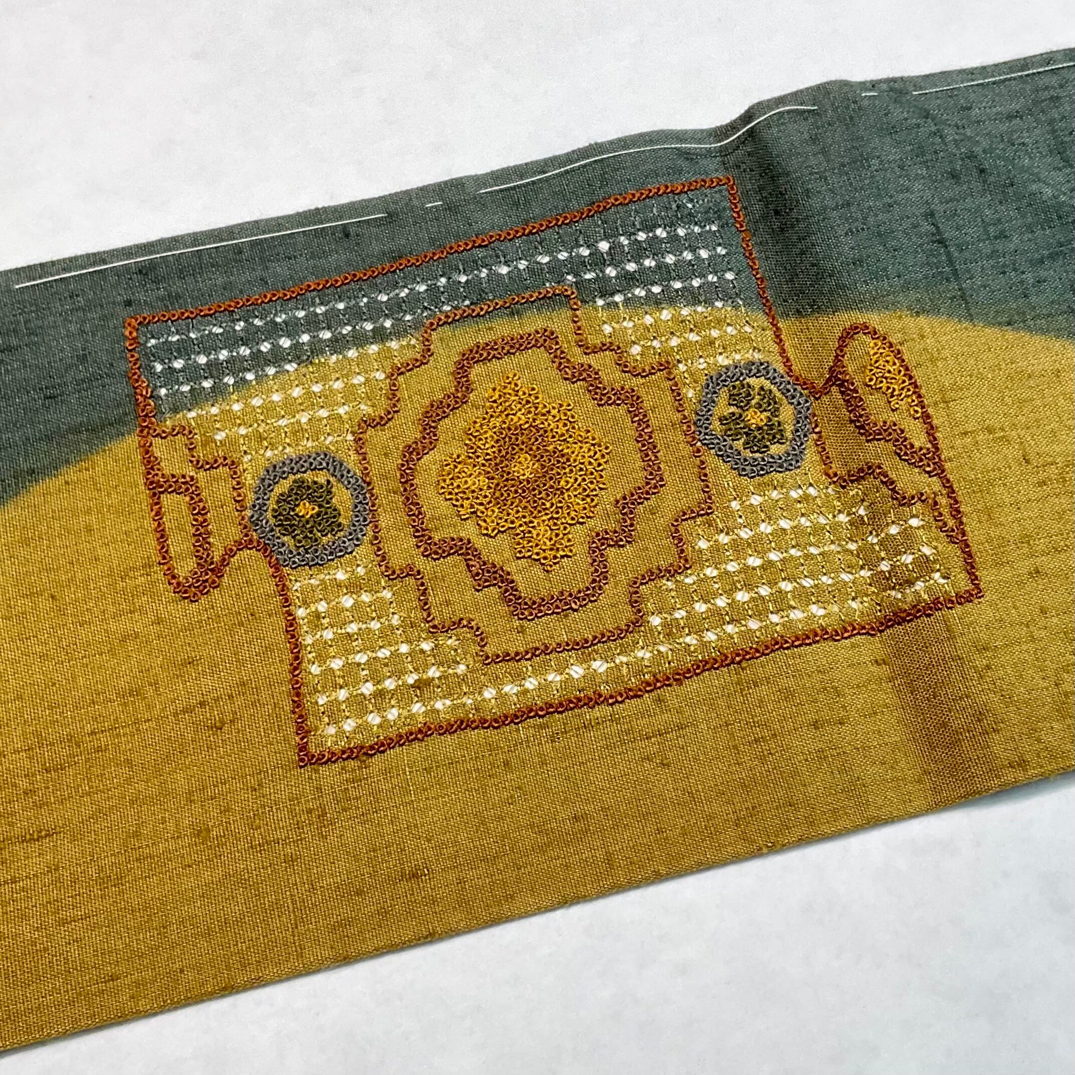 Oriental Load* スワトウ刺繍 相良刺繍 幾何学模様 未使用 リサイクル名古屋帯 A420