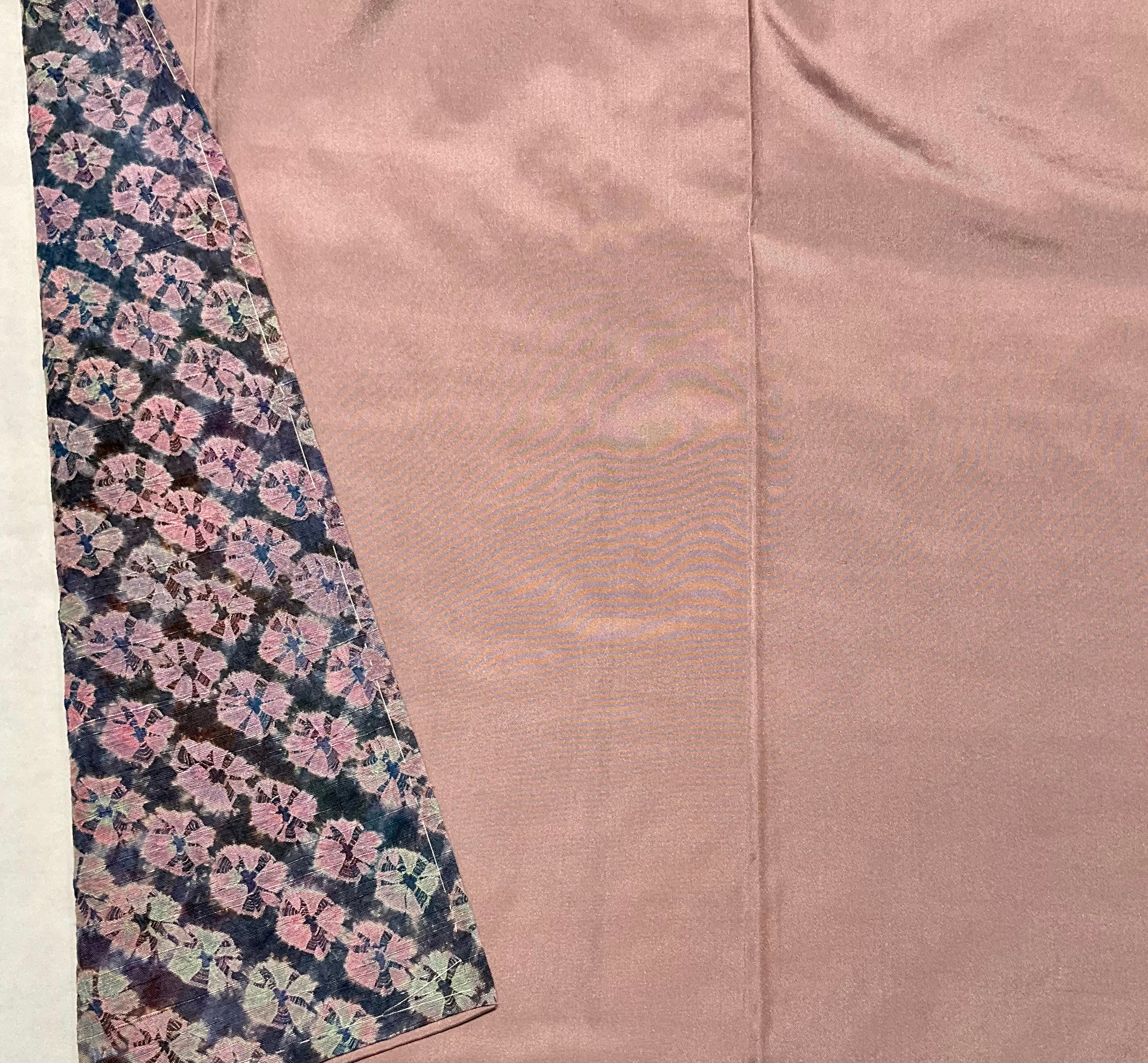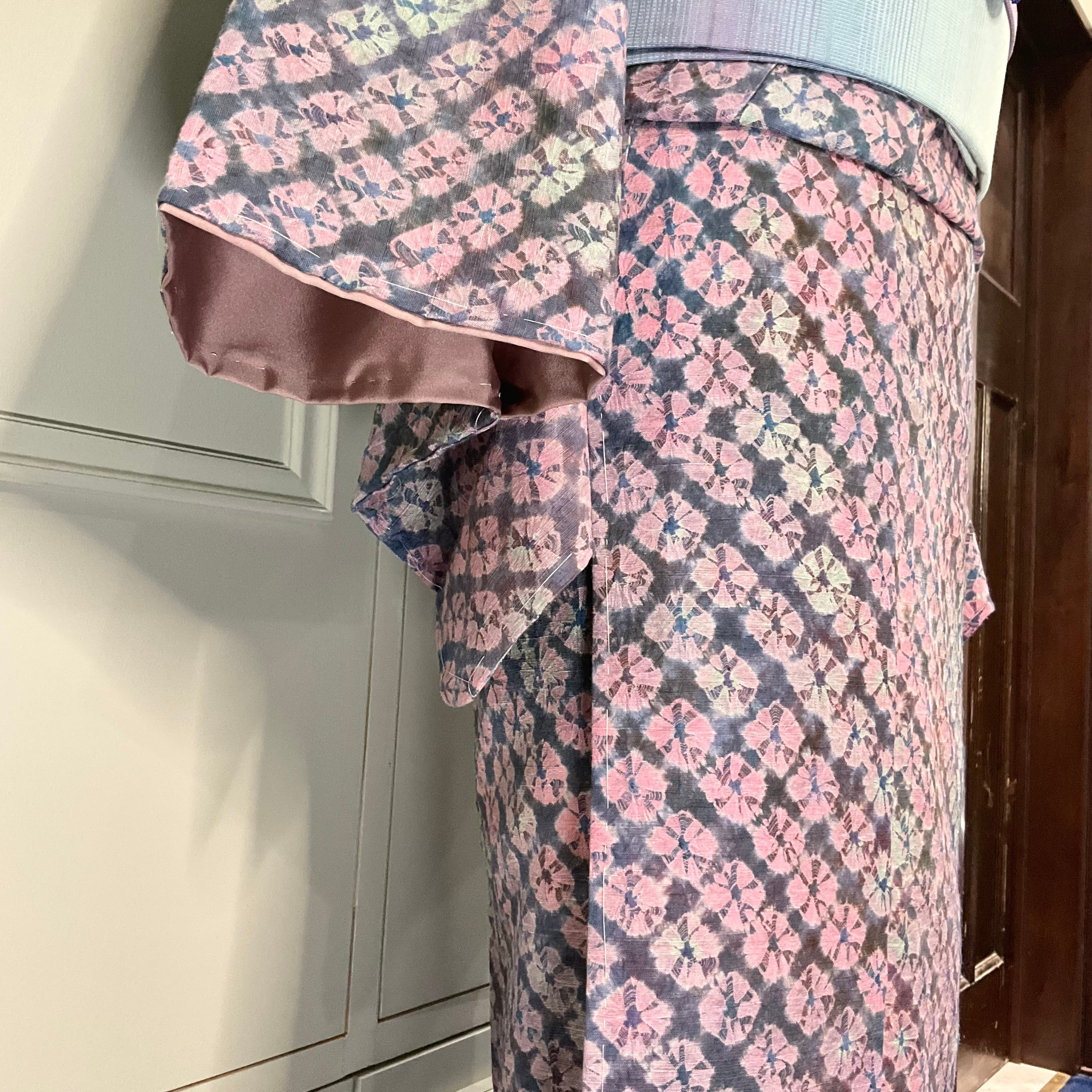 幻想的な薄紫の朝焼けを感じるようなお色目と絞り独特のふんわりとした色の境界線が味わい深くお洒落ですね
