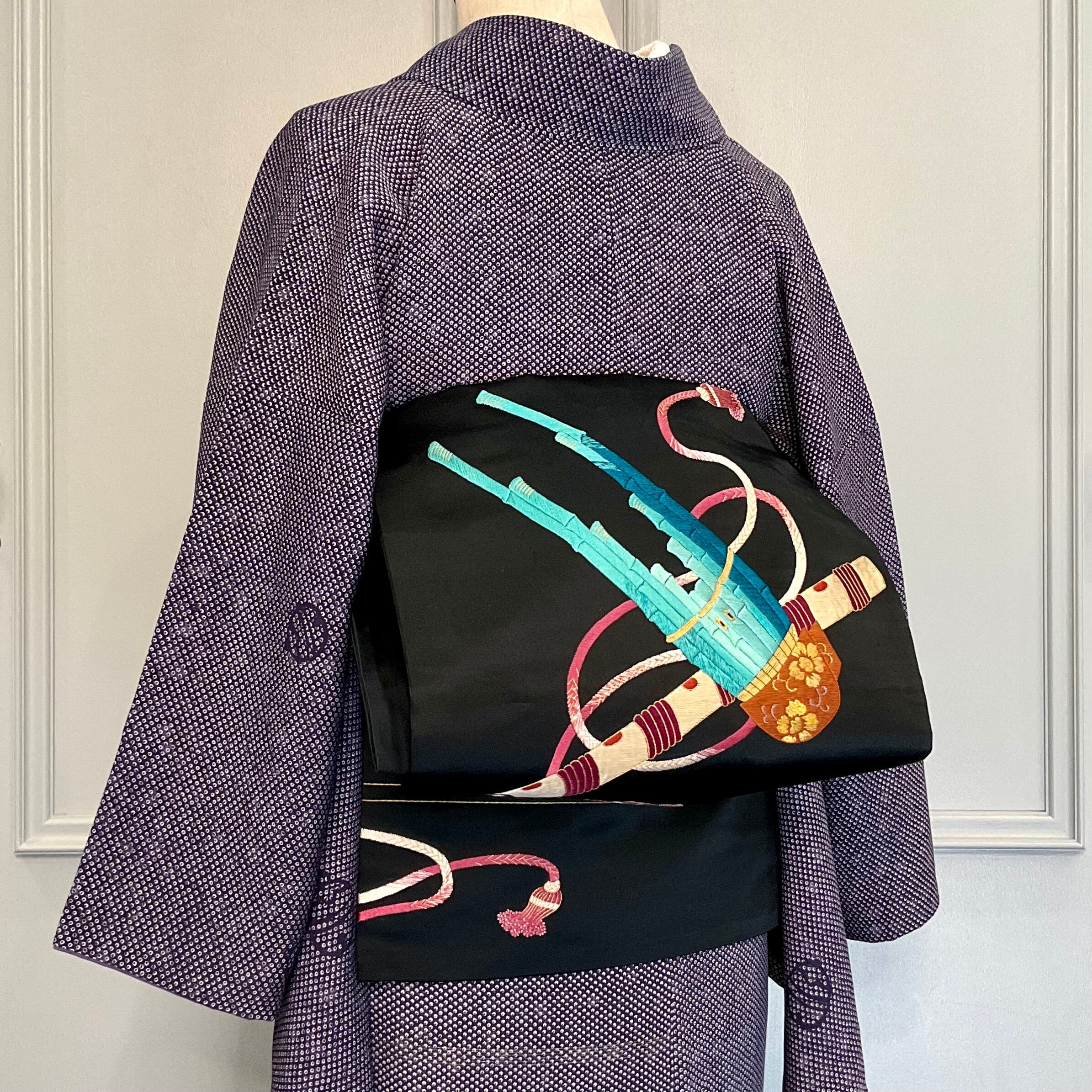 お太鼓には大きな笙と笛、胴前にも笛が刺繍され、今にも雅な音色が聞こえてきそうですね♪
