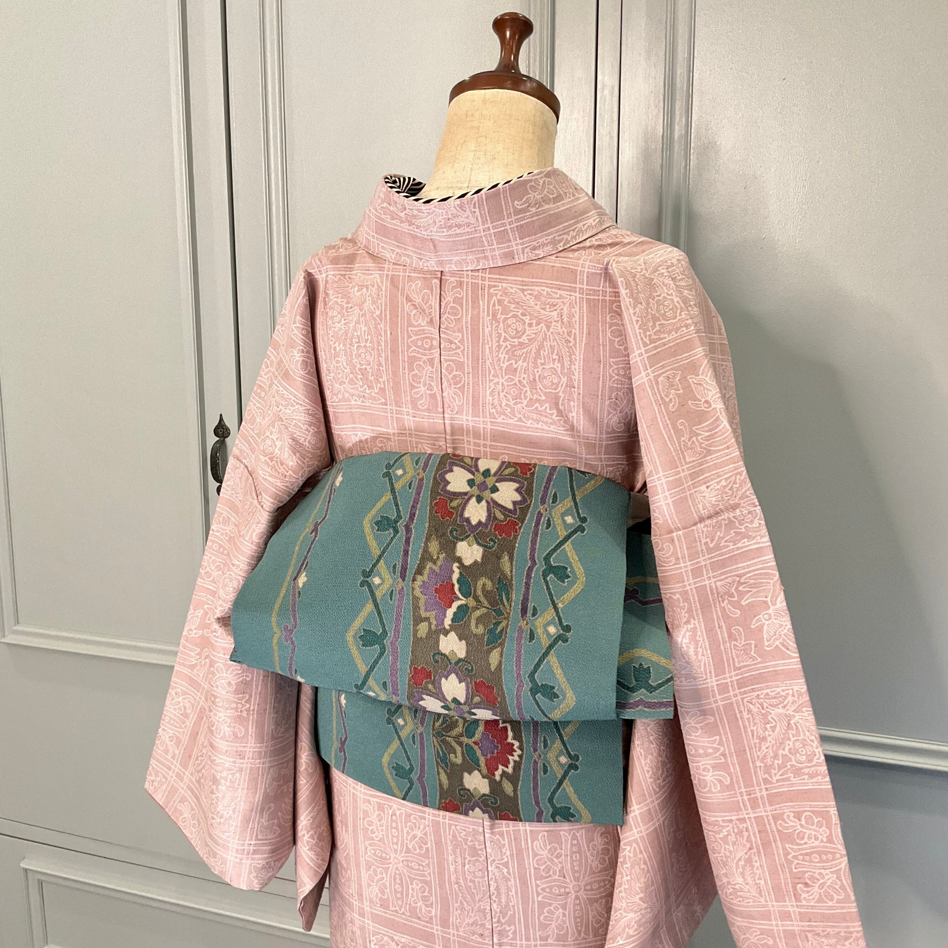 葉や花模様でデザインされたラインはアーガイルのような少しトラッド感があり、今回コーディネートしたお洋服のようなお着物にしっくりきますね♪