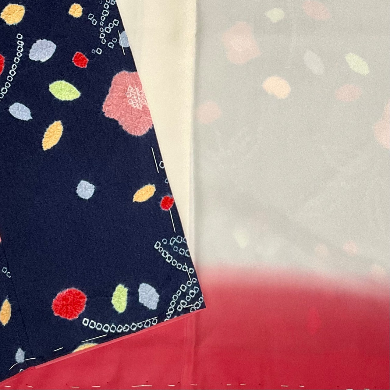 絞り染めの色の出方が、ちぎり絵のような雰囲気