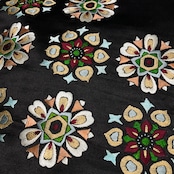 黒繻子地に、雪の結晶のようなモチーフが刺繍されたアンティーク名古屋帯です。
