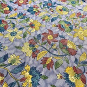 グレーの地色は濃淡でヒョウ柄のような模様が入り、平面的な更紗模様に動きが現れ、ココロ踊るデザインが楽しさを運んでくれそうですね♫