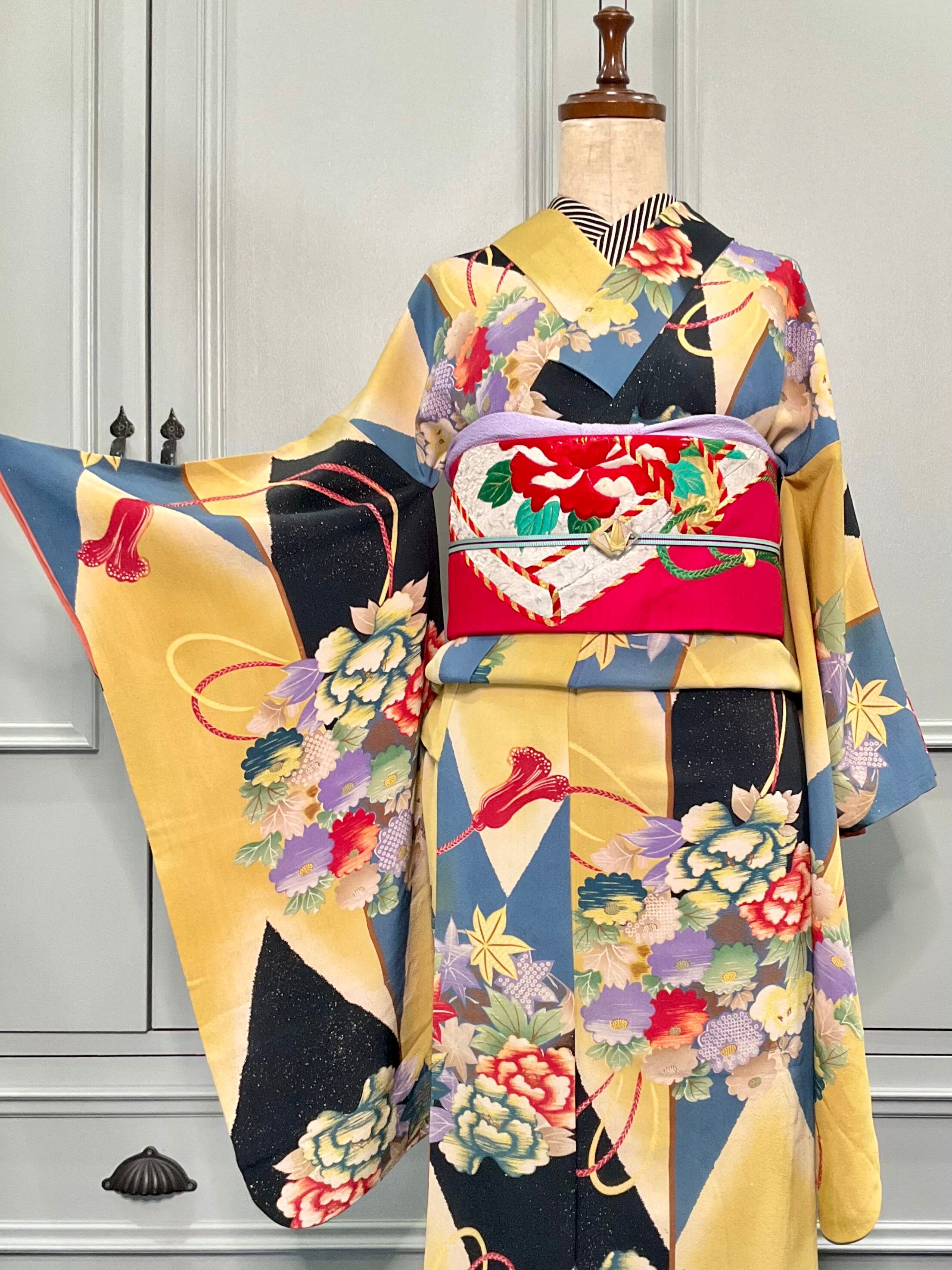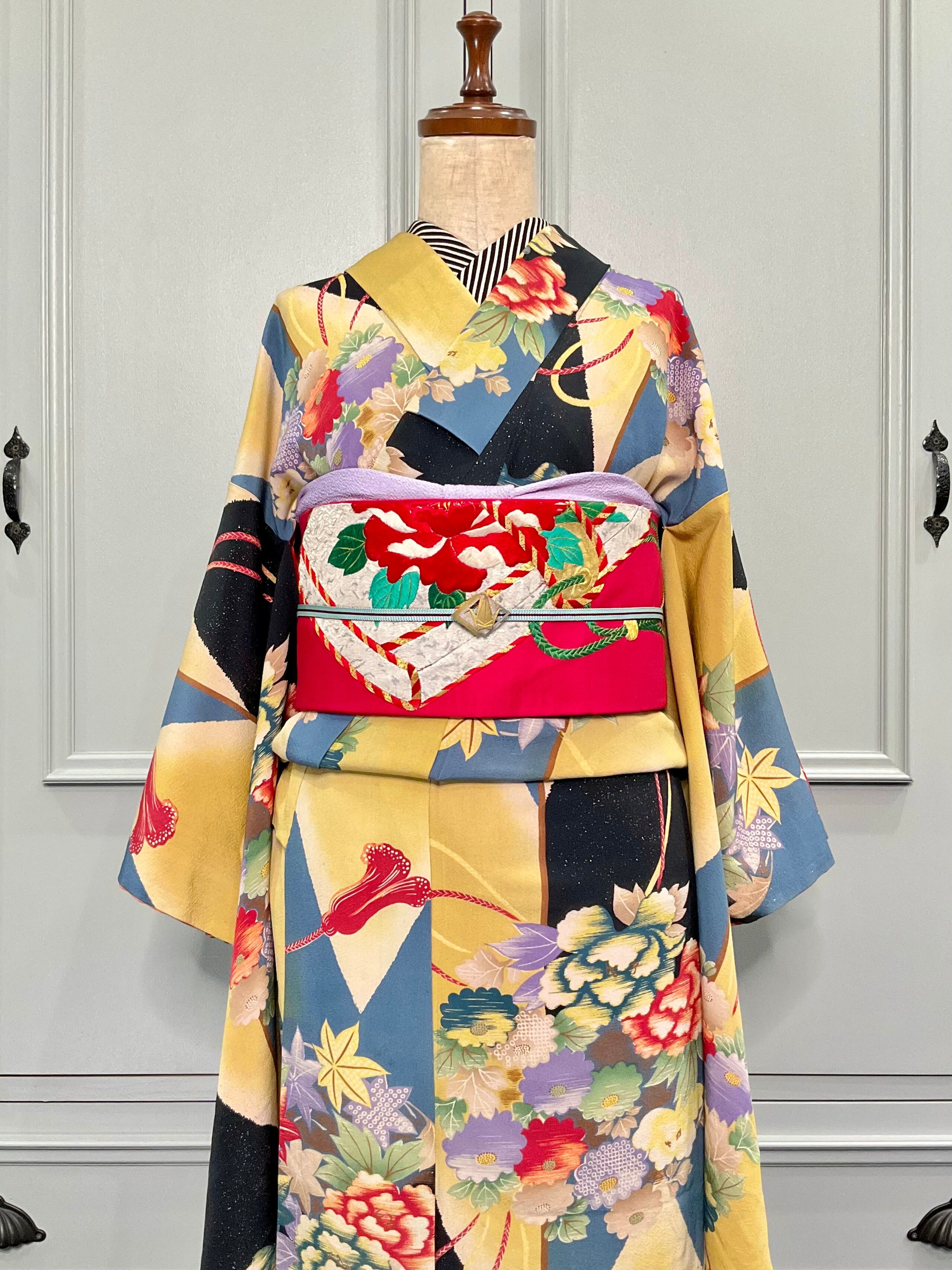 3色の矢羽根模様に個性を感じられ、多色づかいで華やかながらも、くすみカラーでまとめているので、派手になりすぎず、