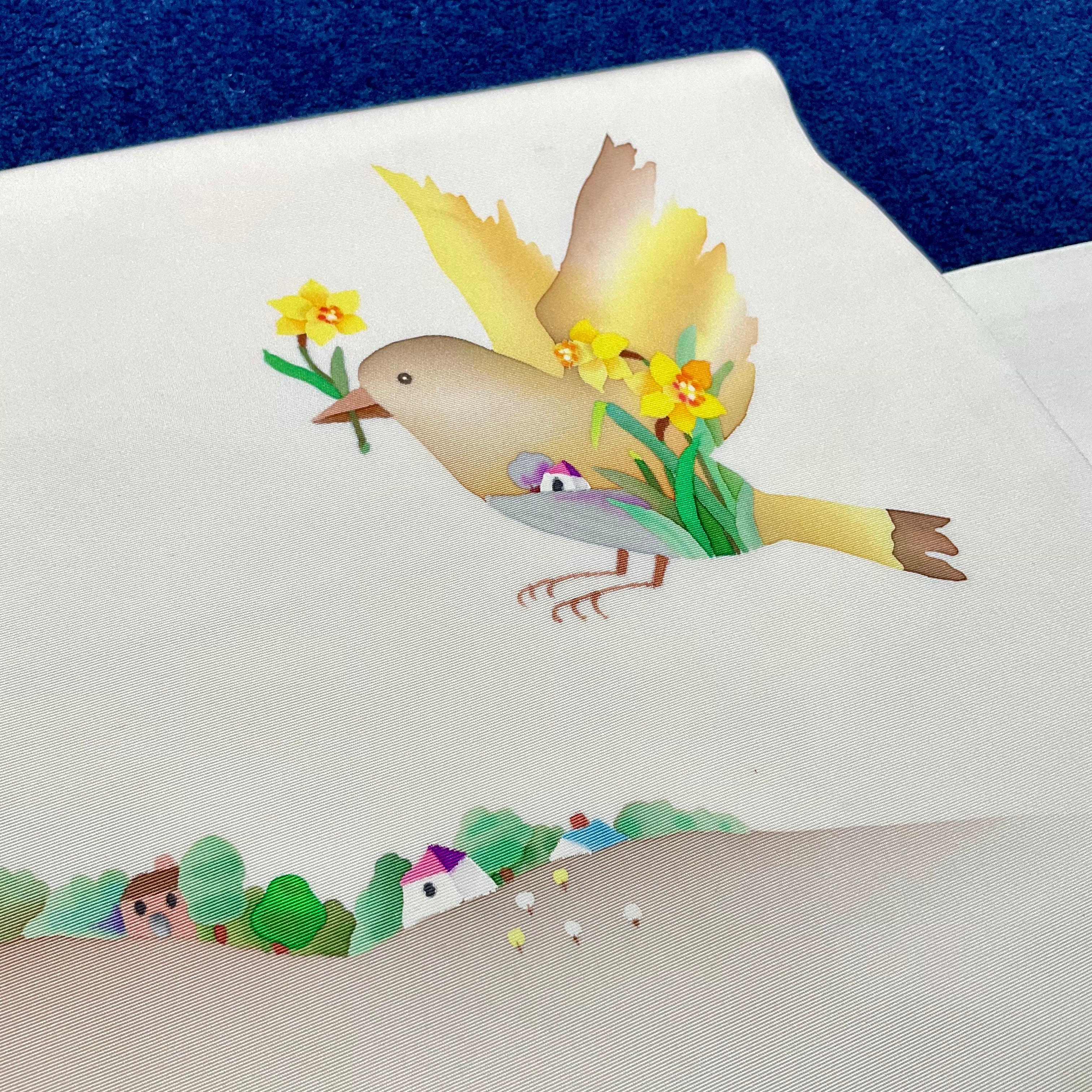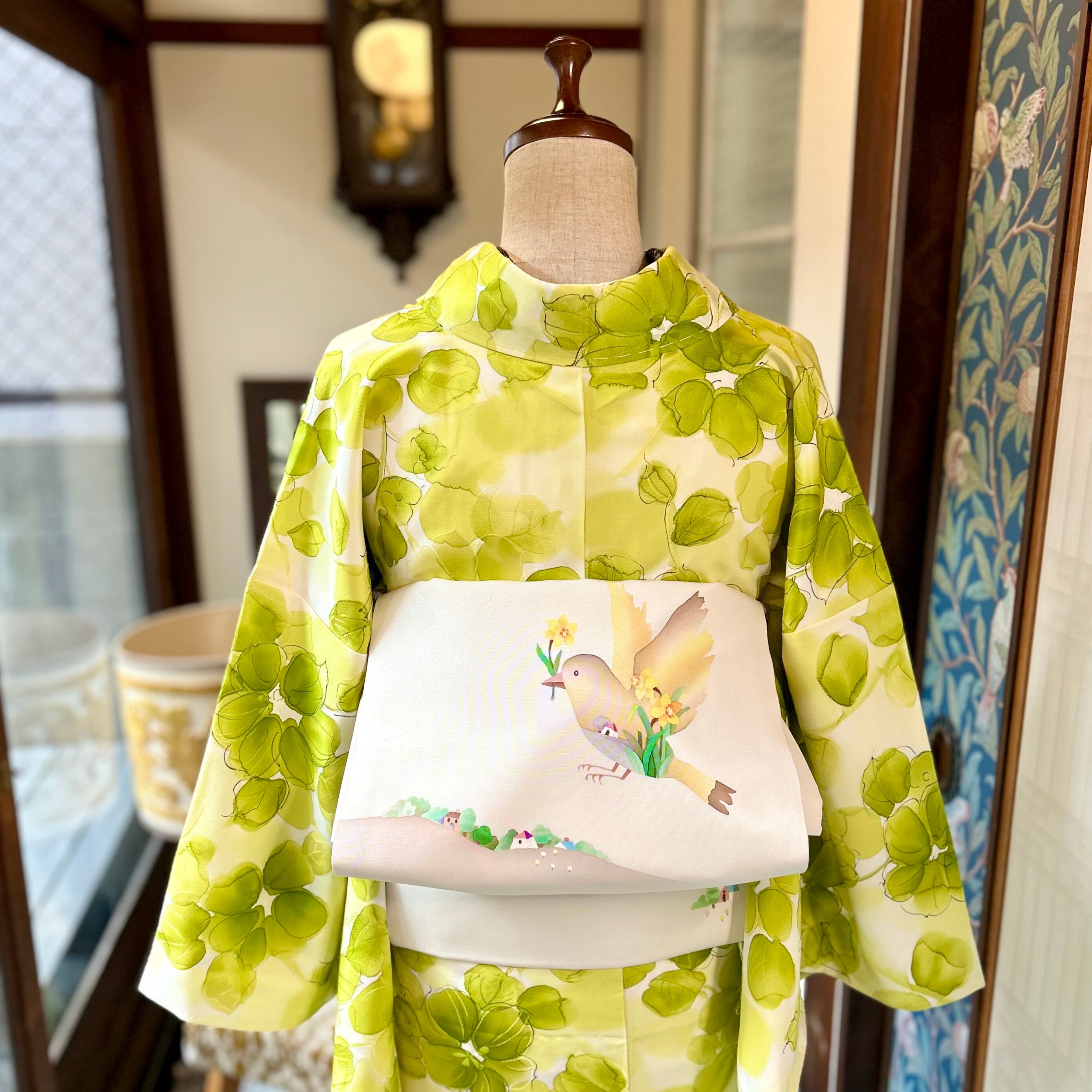 そして、こちらの帯は締める方向によって胴回り部分に出る小鳥さんのデザインが変わります!
