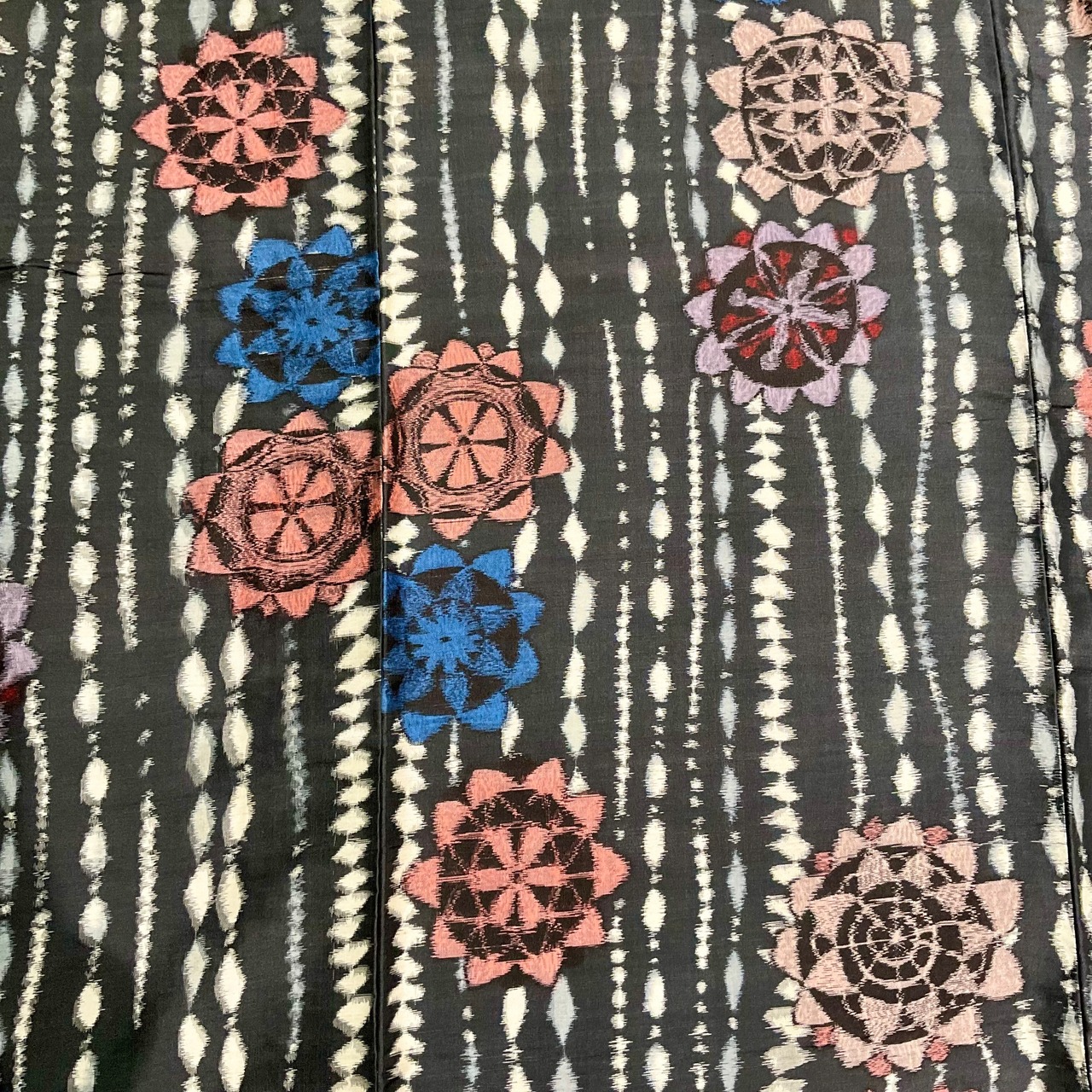 個性的な幾何学模様が多く、アンティークファンに愛され続ける銘仙♡