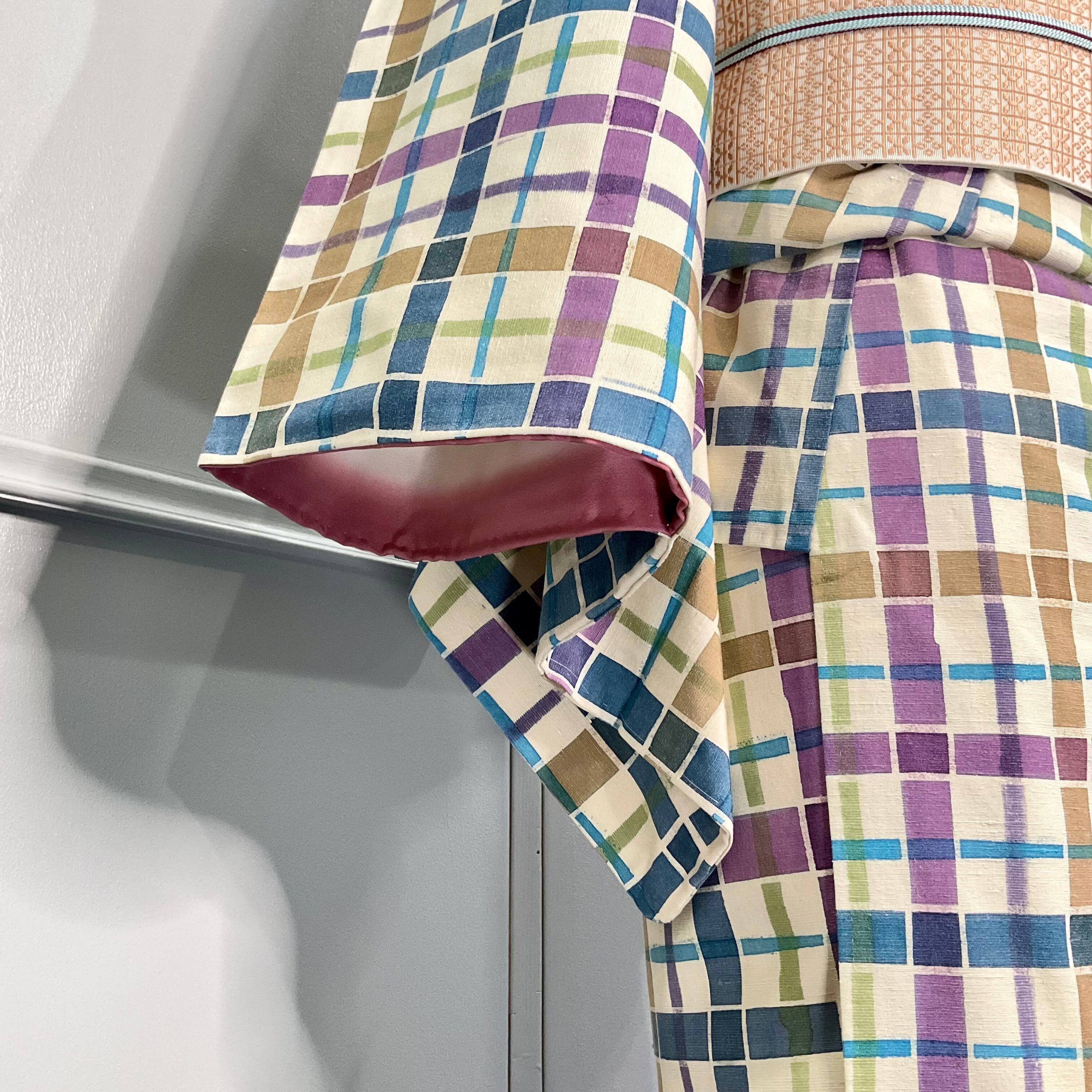 紬のやわらかさに、レトロなカラー、格子に引かれた線も温かみがあり、やさしい雰囲気が魅力的な一枚です☘️
