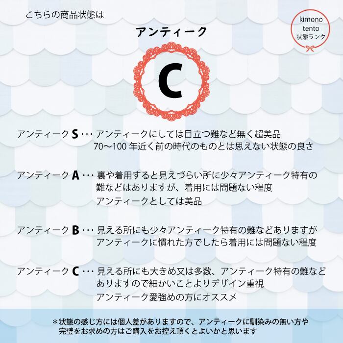 *その他、表記にないアンティーク特有の染めムラや織ムラ、くすみなどが僅かに見られる場合があります。