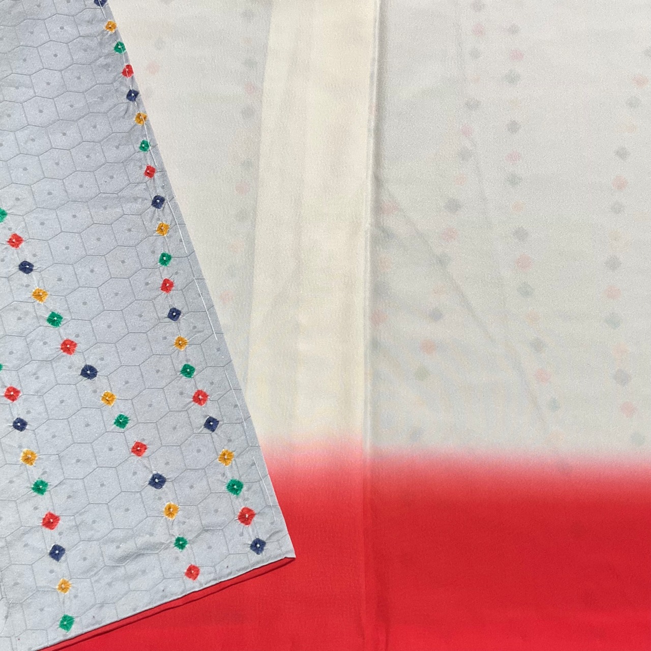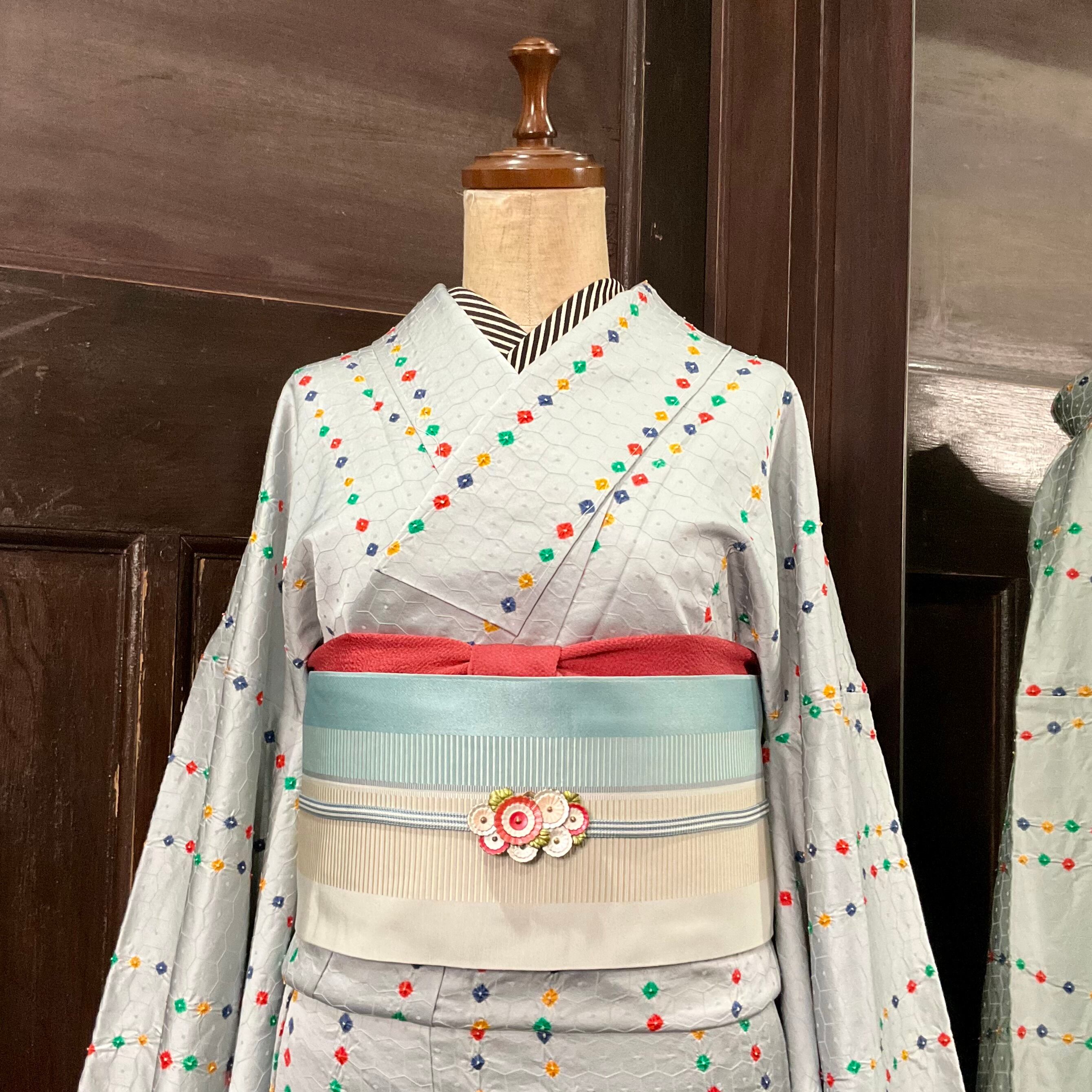 絞り染のレトロポップな鹿の子模様は、グレーの地色に映える鮮やかなカラーで彩られ、かわいらしさと華やかさで、気持ちがウキウキしますね✨