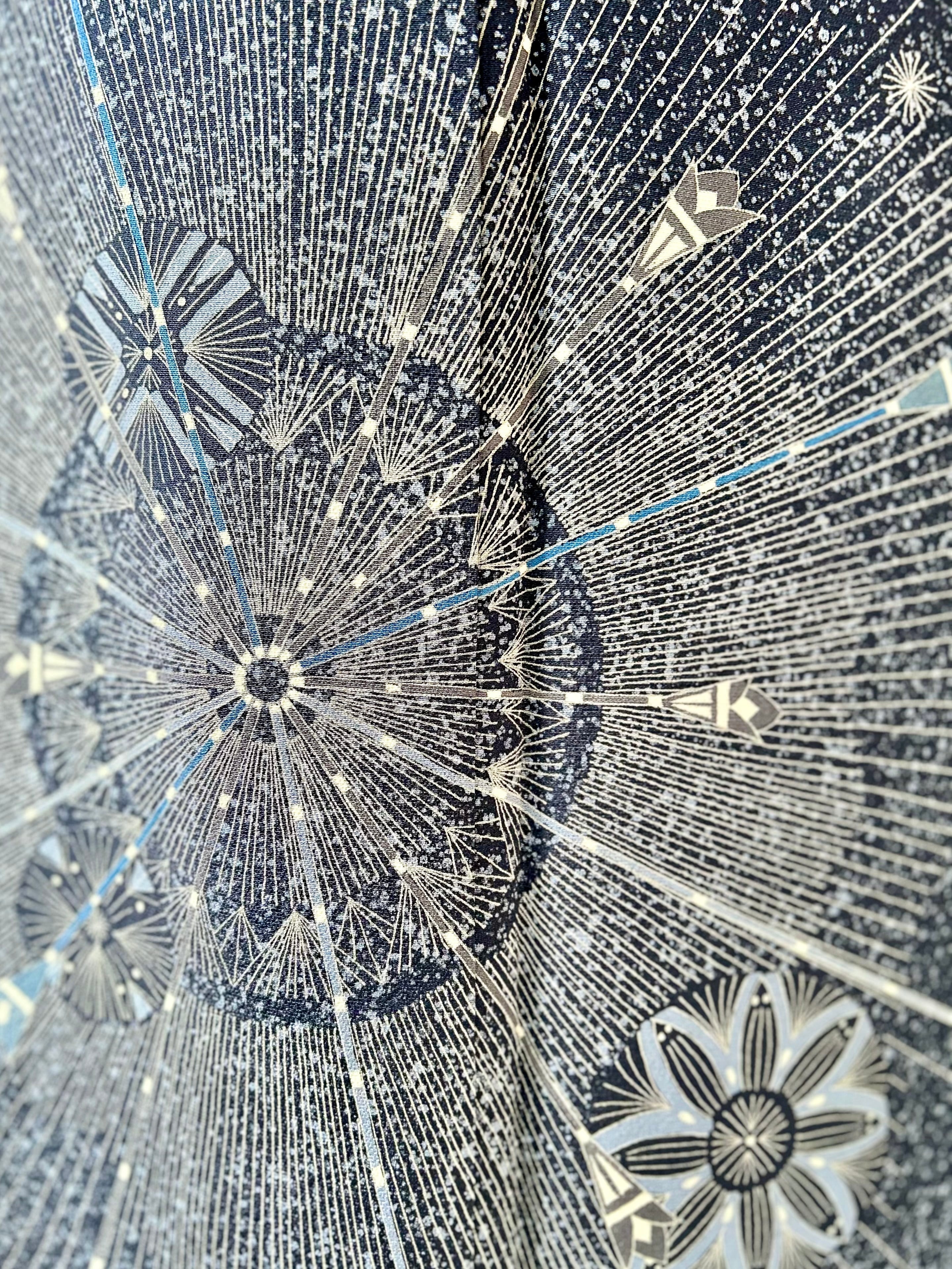 long*光を射抜く*たたき染め 霰ぼかし 星空 夜空 宇宙 リサイクル付下げ A579