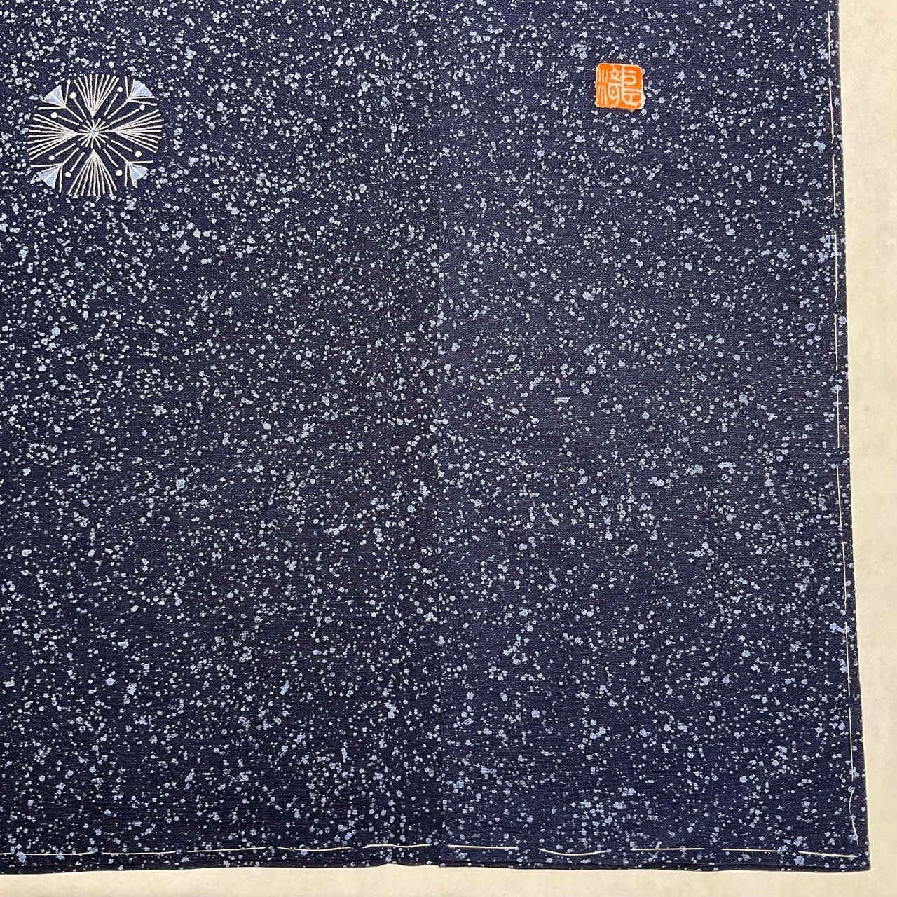 たたき染めのこまやかな飛沫の斑点をベースに、放射状に矢が放たれたようなデザインが大胆でステキな1枚です✨