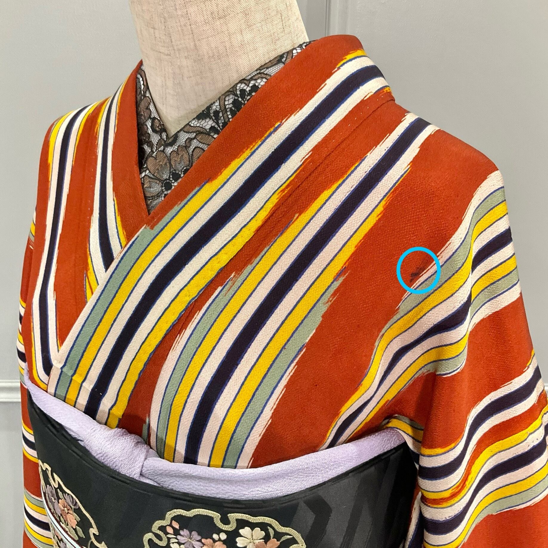 縞の中には黒のラインが入っていて、キリッと粋でモダンな雰囲気が素敵な大人アンティーク✨
