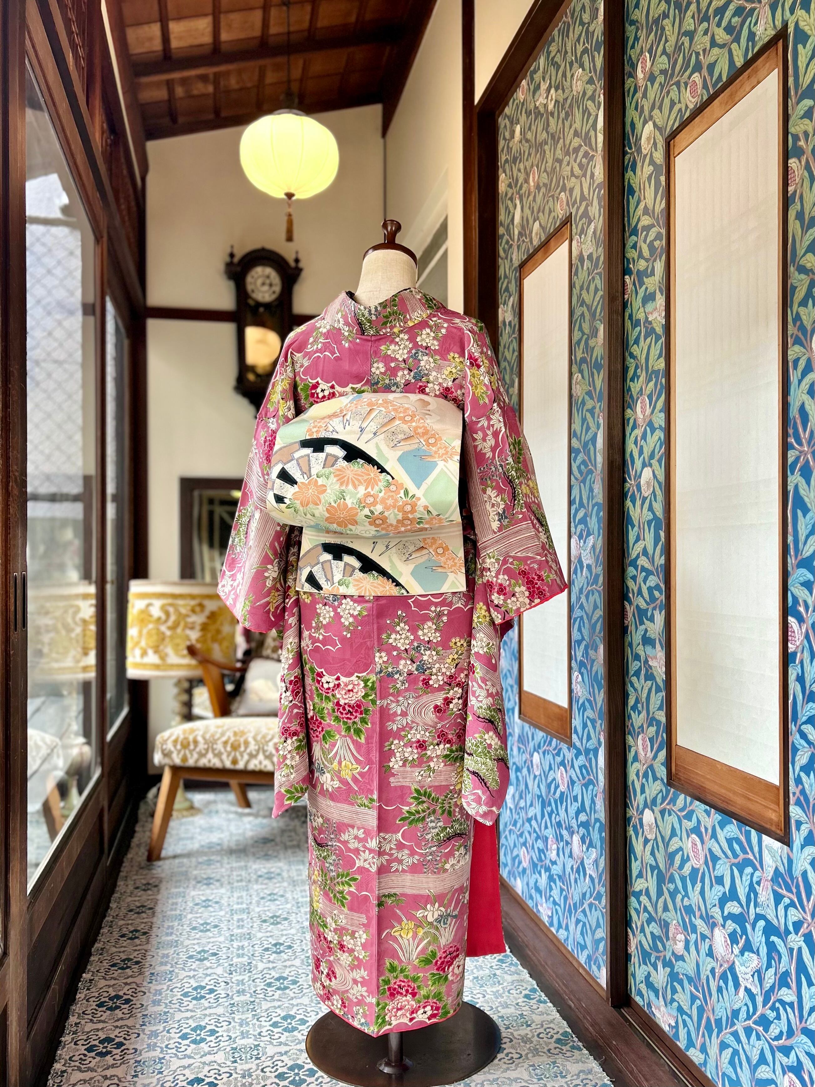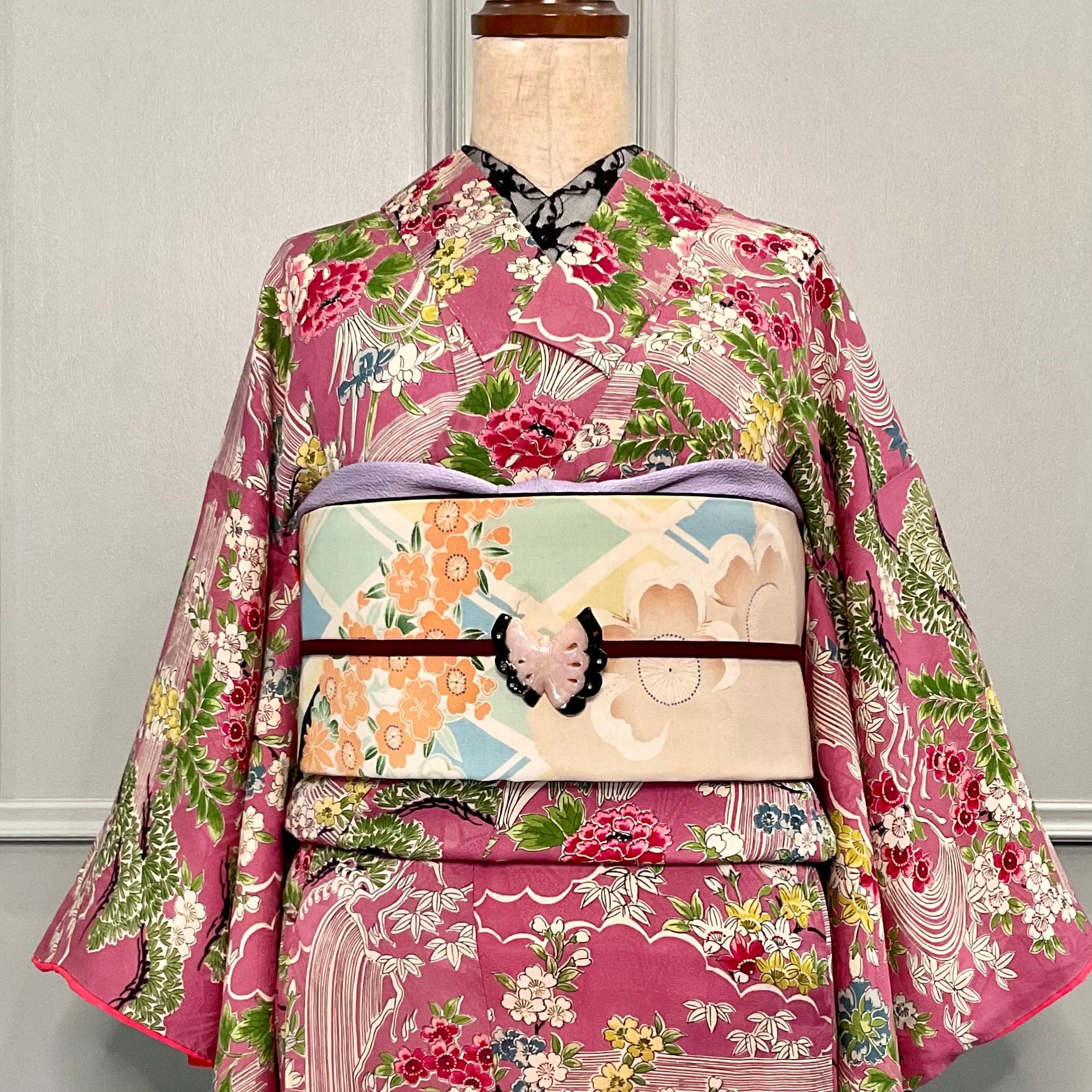 ○合わせたアンティーク着物、オリジナル帯揚げ、オリジナル三分紐もweb shop掲載品です♪