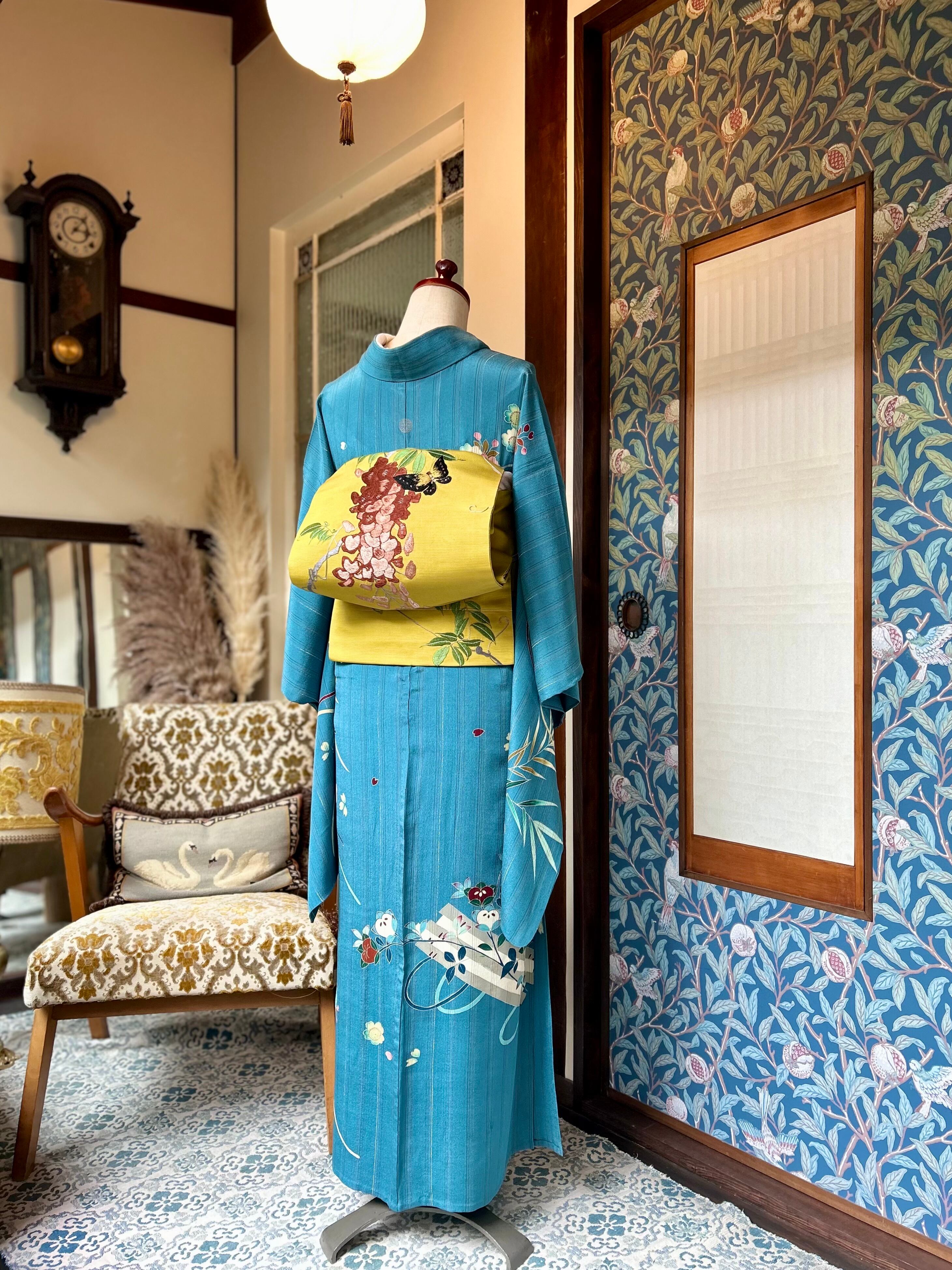 今回は、アンティークの訪問着をカジュアルダウンさせて、こちらの名古屋帯を合わせてみましたが、アンティークの小紋や現代モノの小紋や紬などにもおすすめです♪