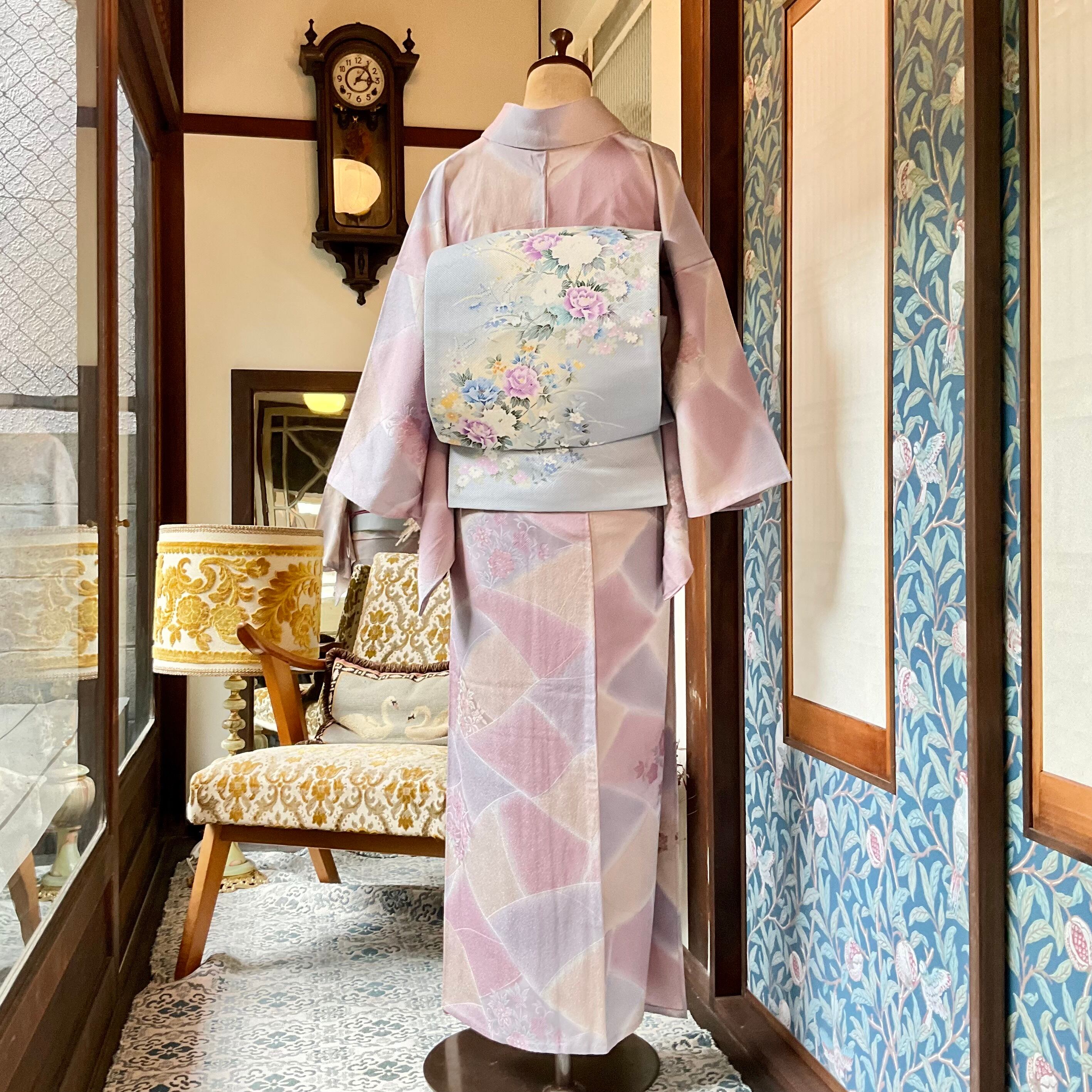 ○合わせた着物とオリジナル帯揚げスモークブルーはweb shop掲載品です♪