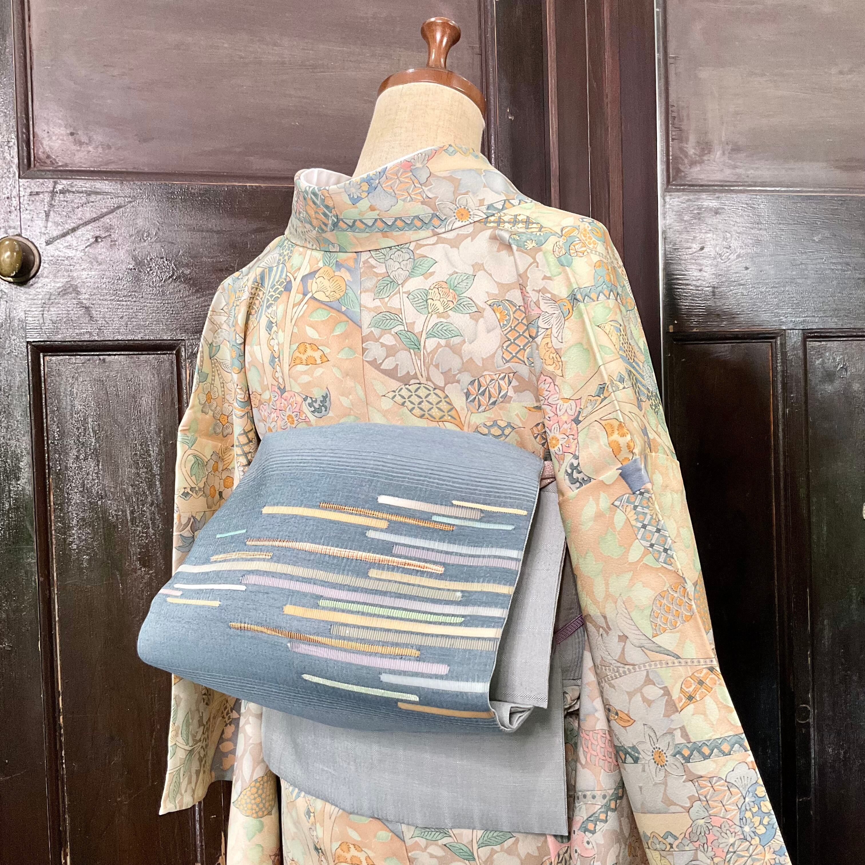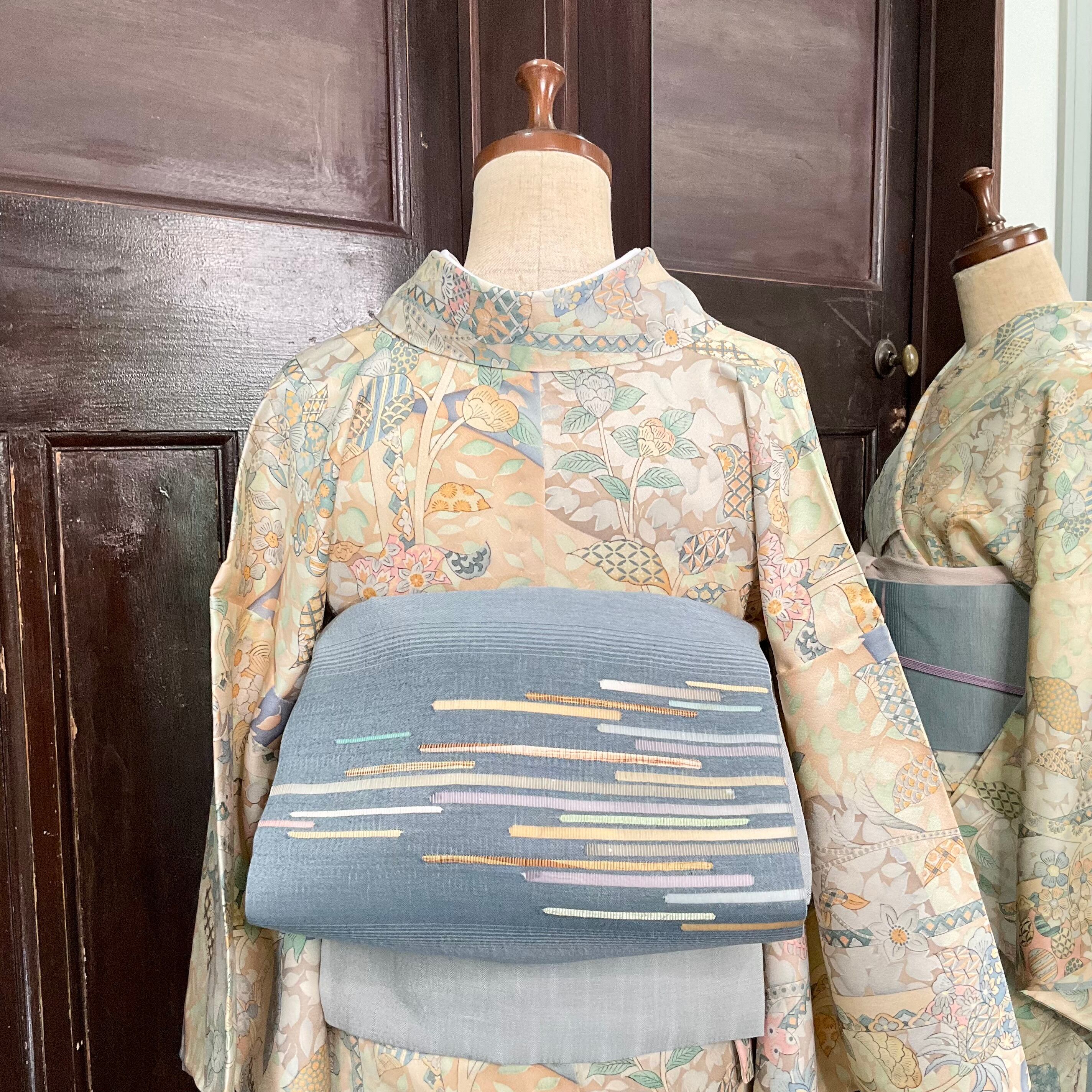 地色のブルーグレーの濃淡は帯地に奥行きを感じさせ、大人のスッキリとした優美な帯姿がステキです✨️
