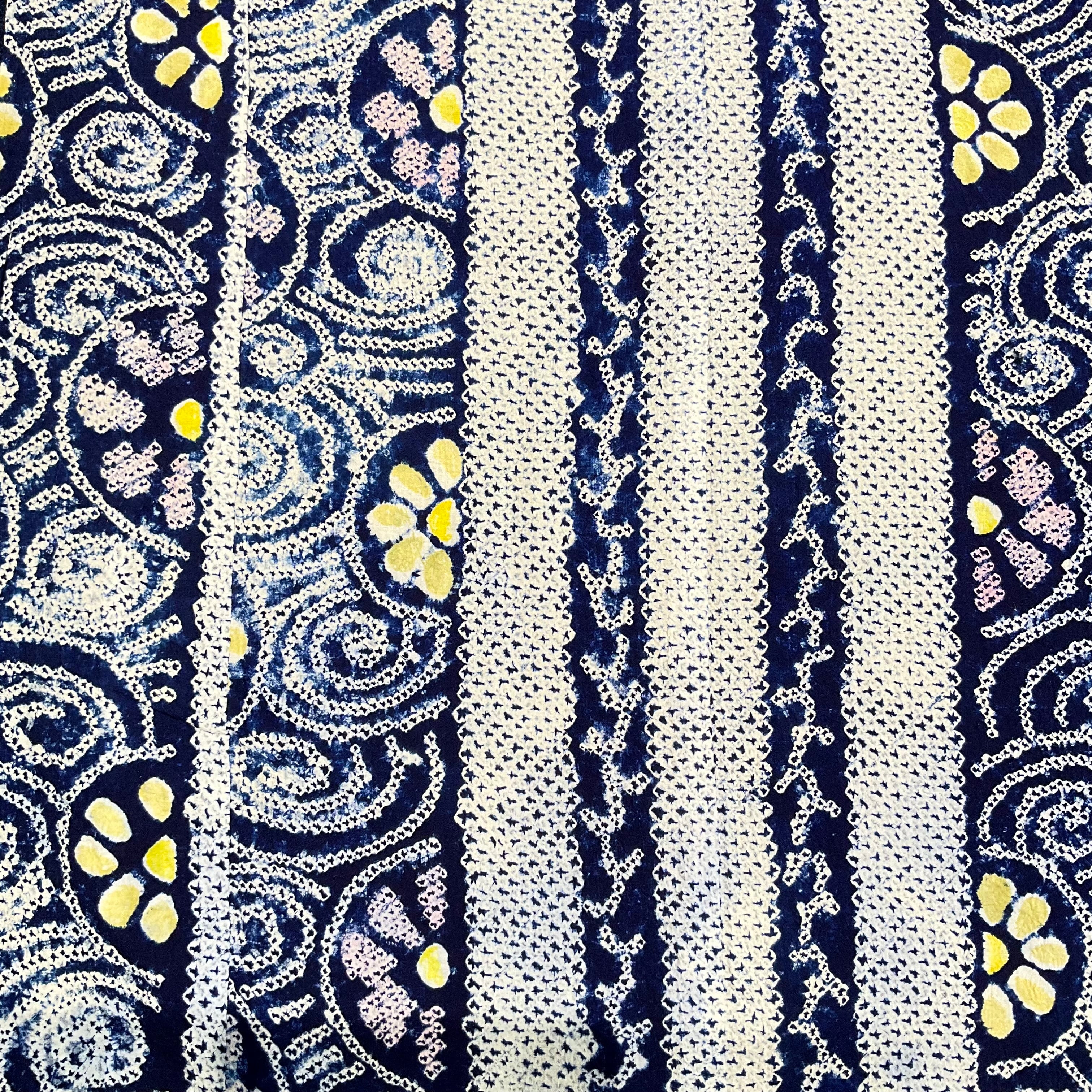 vortex*有松鳴海絞り浴衣 渦 ぐるぐる 花 ネイビー イエロー A701