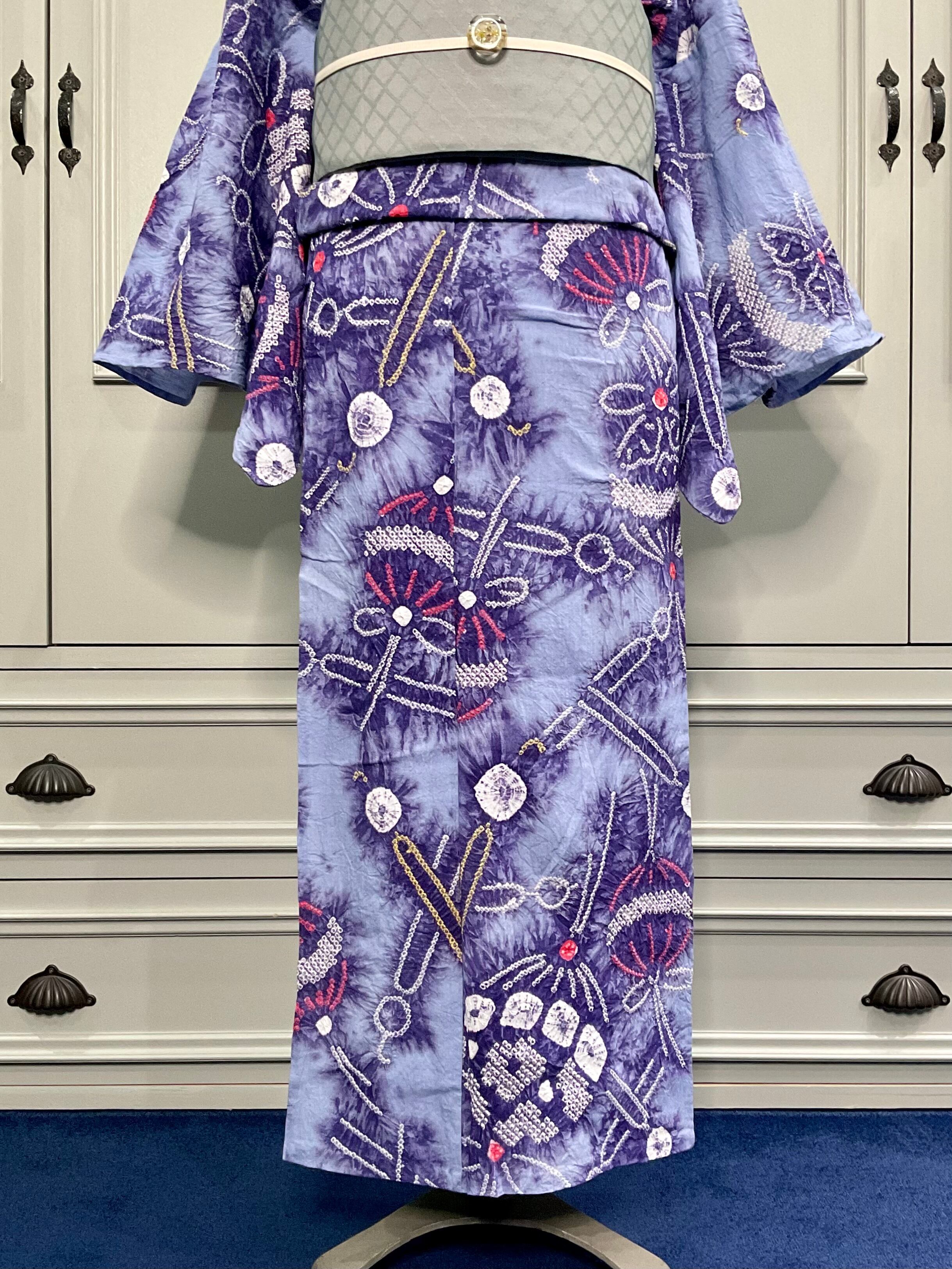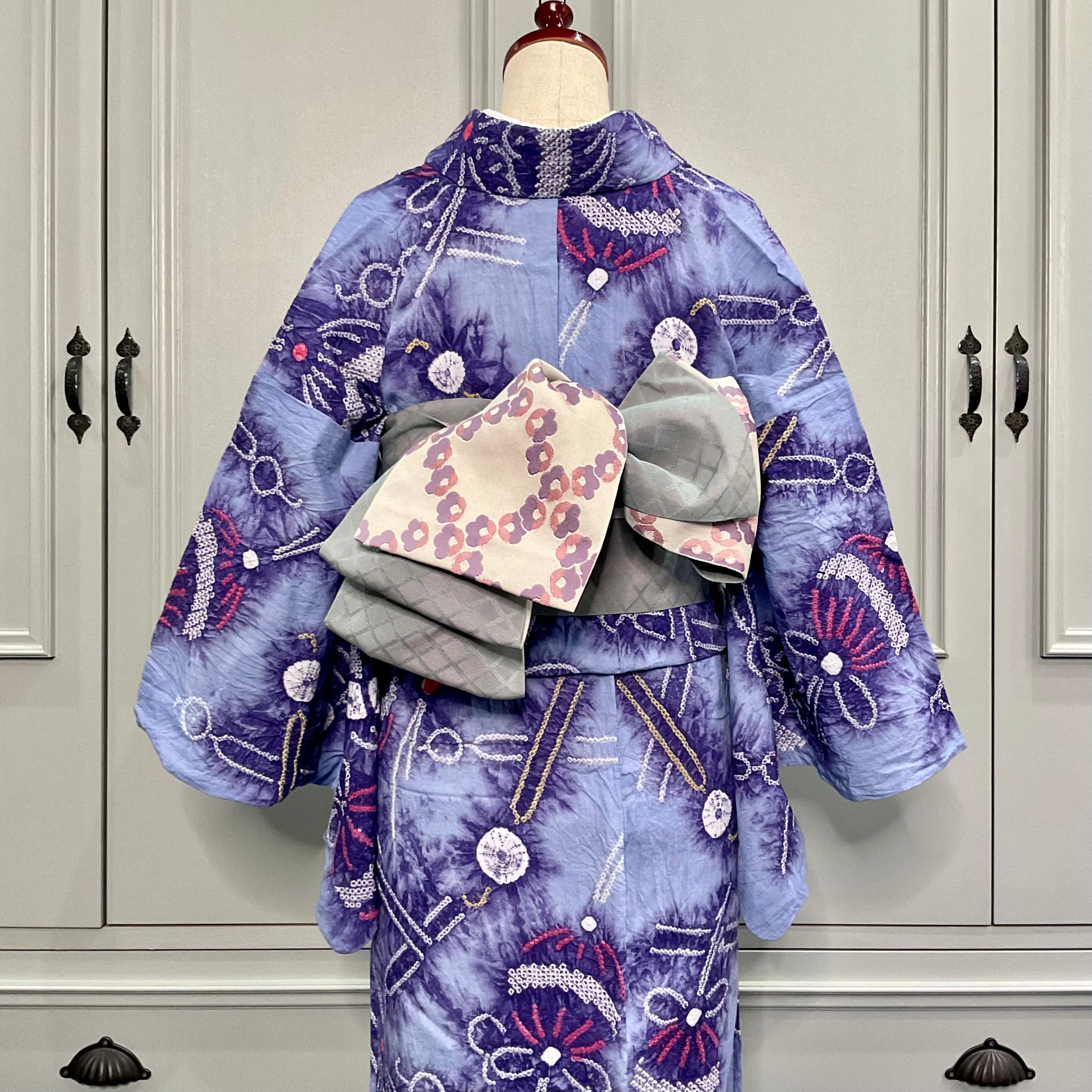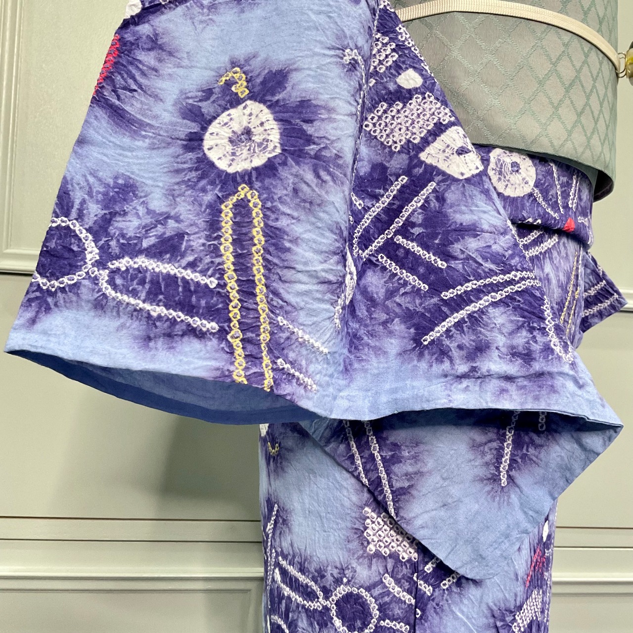鞠とかんざし*有松鳴海絞り浴衣 まり 簪 くすみパープル くすみブルー紫 A702