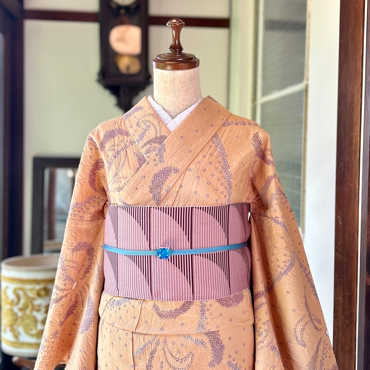 アースカラーがお洒落なので、中に半襦袢などを着て木綿の単衣着物感覚で単衣の時期に着るのもオススメです!
