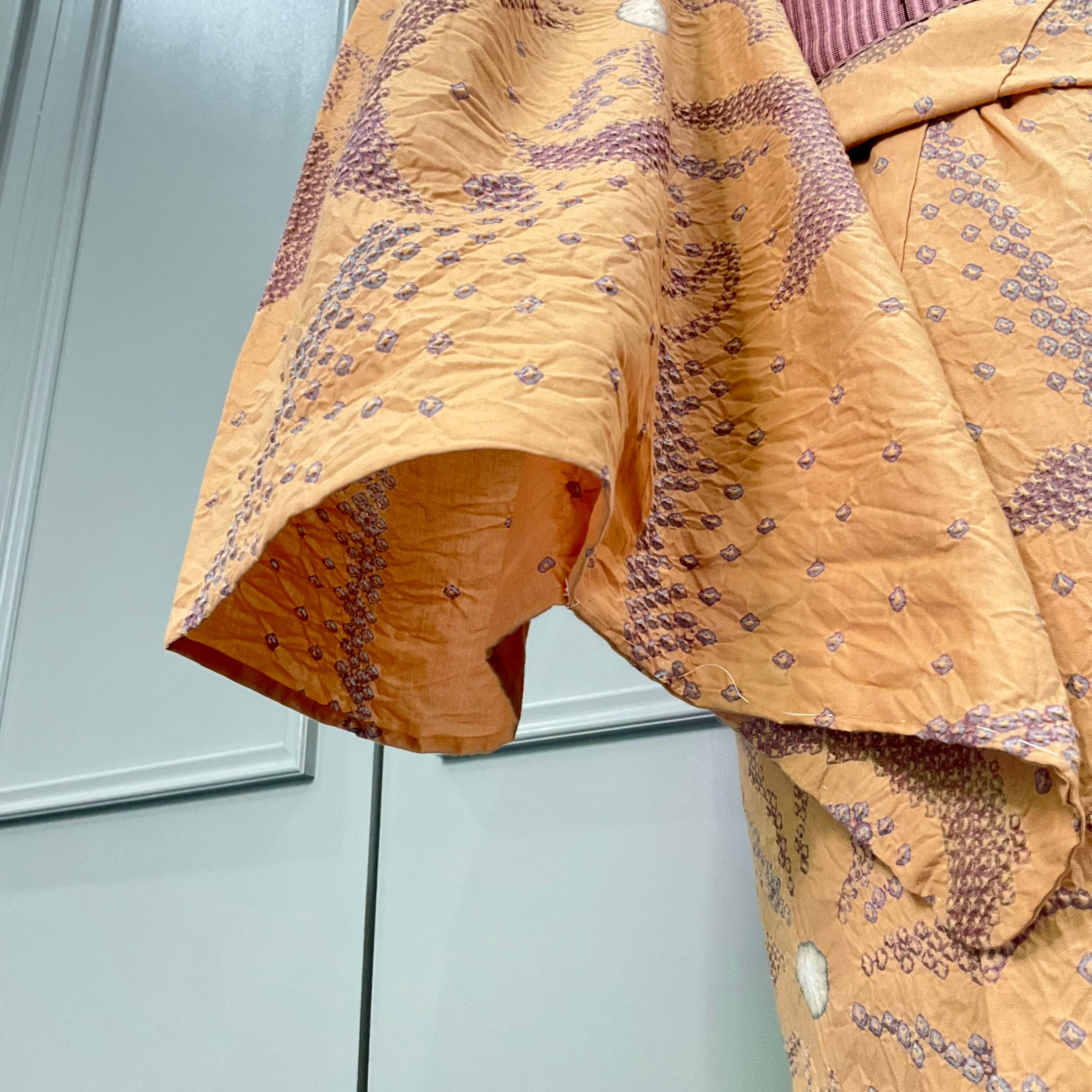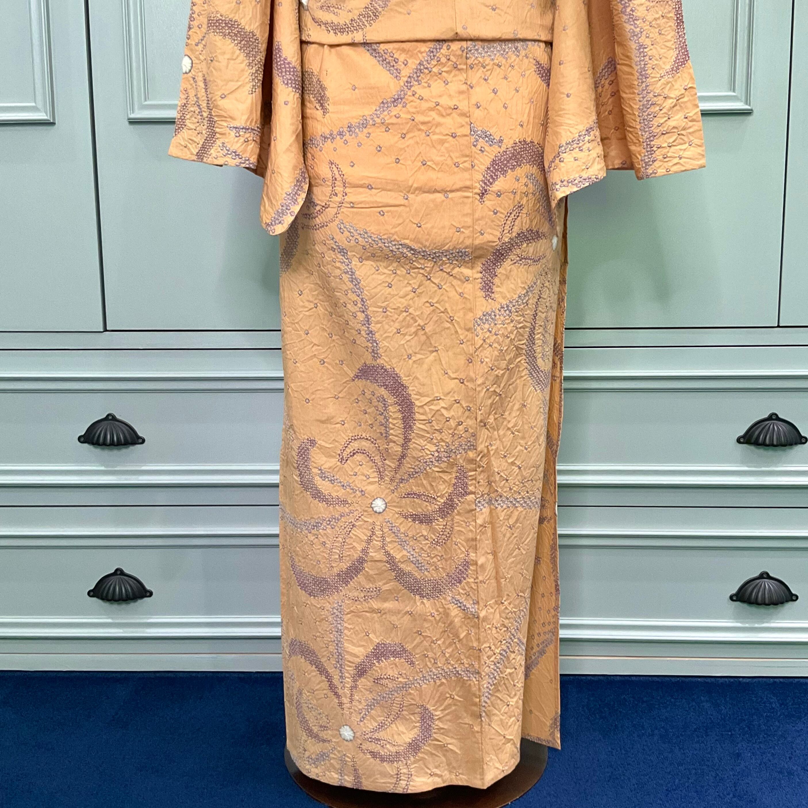 飴色の地色に絶妙なカラーの絞り模様がオシャレな有松鳴海絞り浴衣です♪