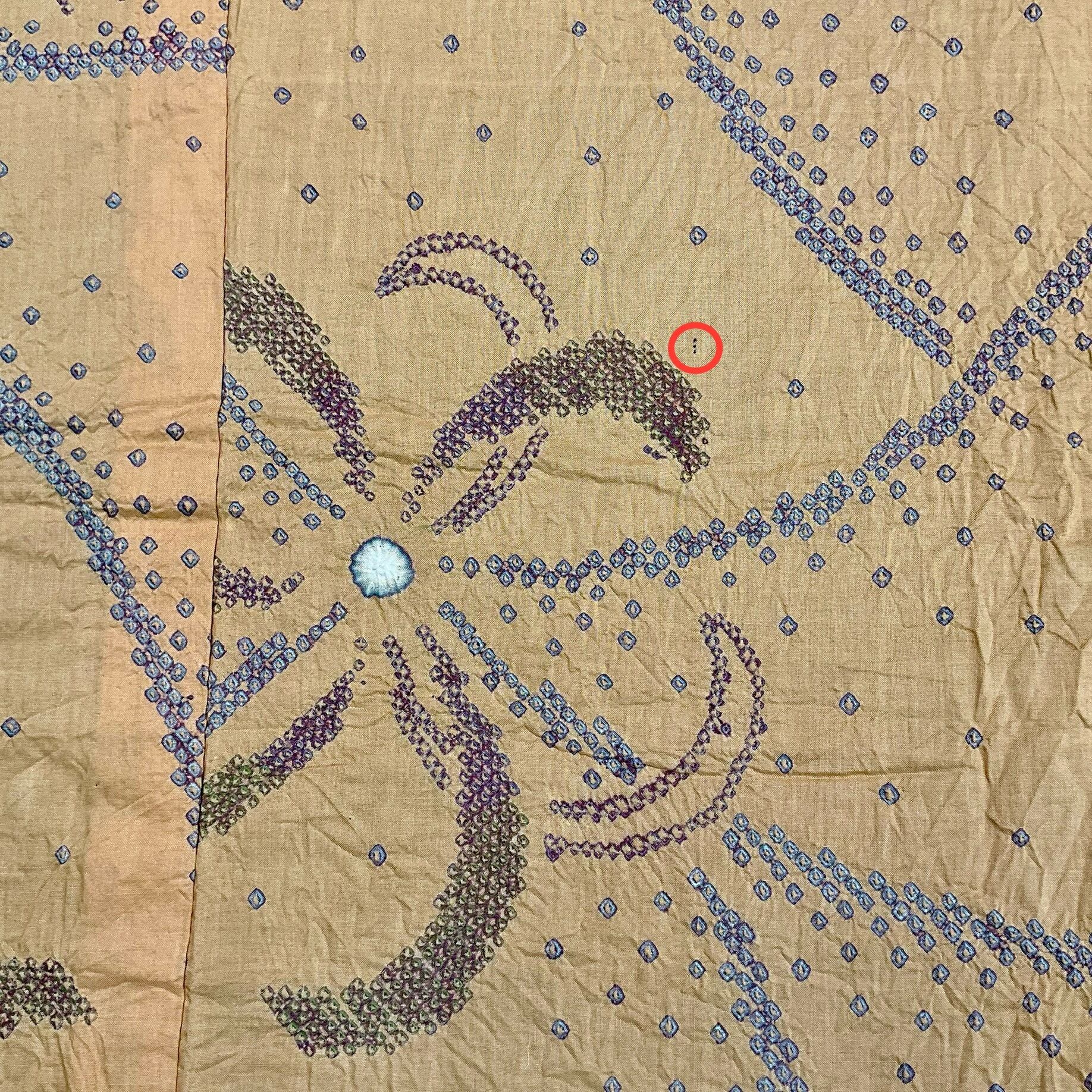 絞りアクと言って、絞りの加工の工程で染み込んだ薬剤などが経年により浮かび上がるものになります。着用には問題ない程度かと思いますので