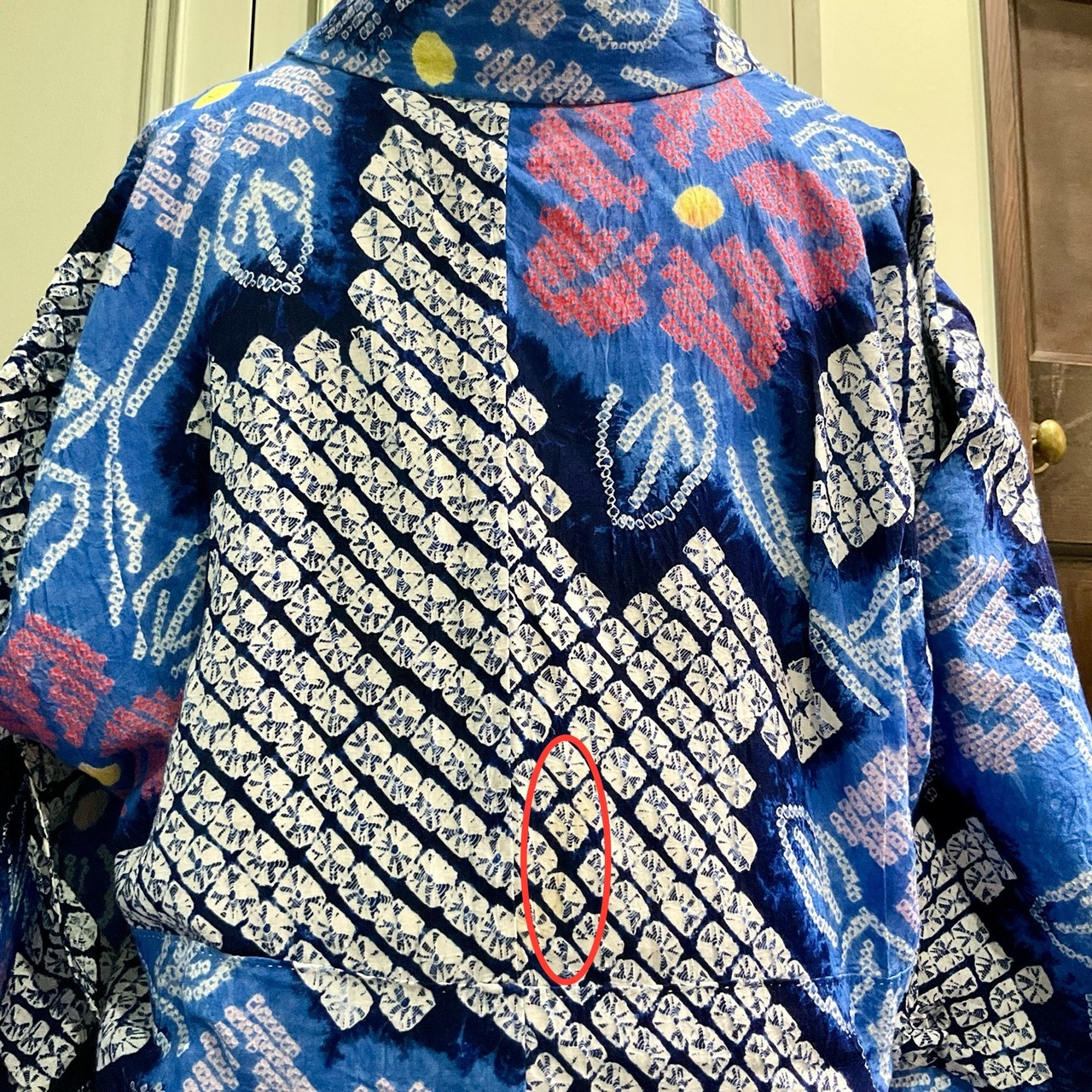 後ろ身頃(トルソー着用時は帯で隠れる所)に絞りアクあり