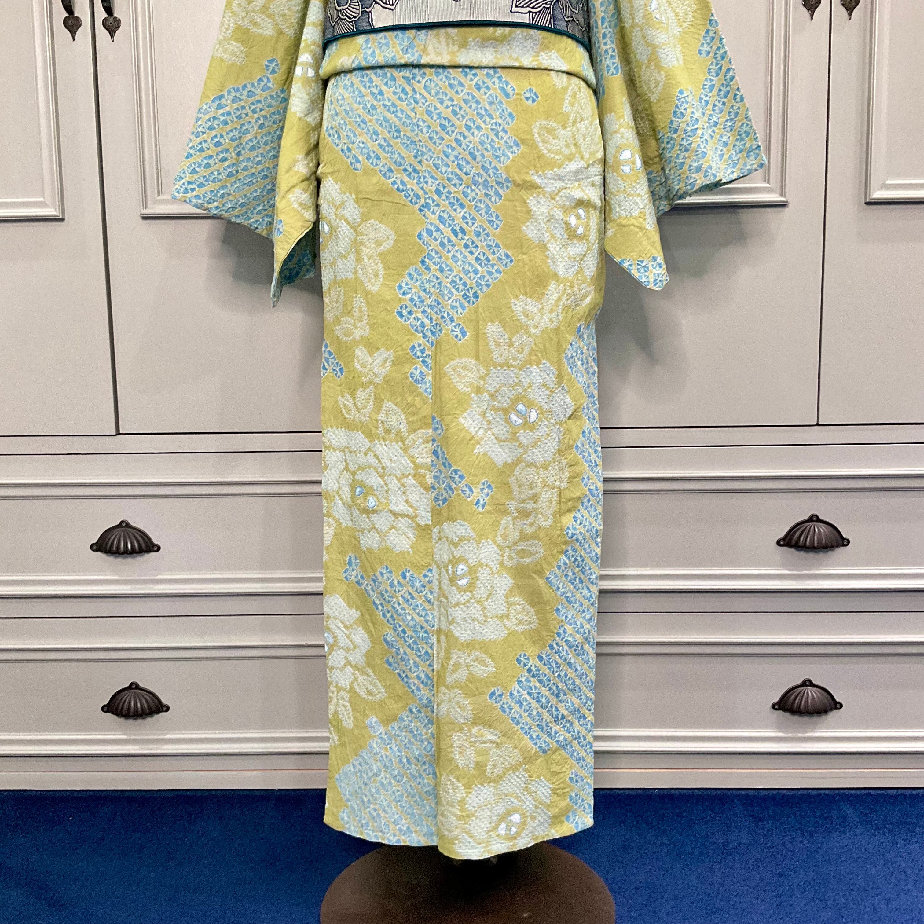 Blue Rose*有松鳴海絞り浴衣 モスグリーン 緑 青 ブルー A754