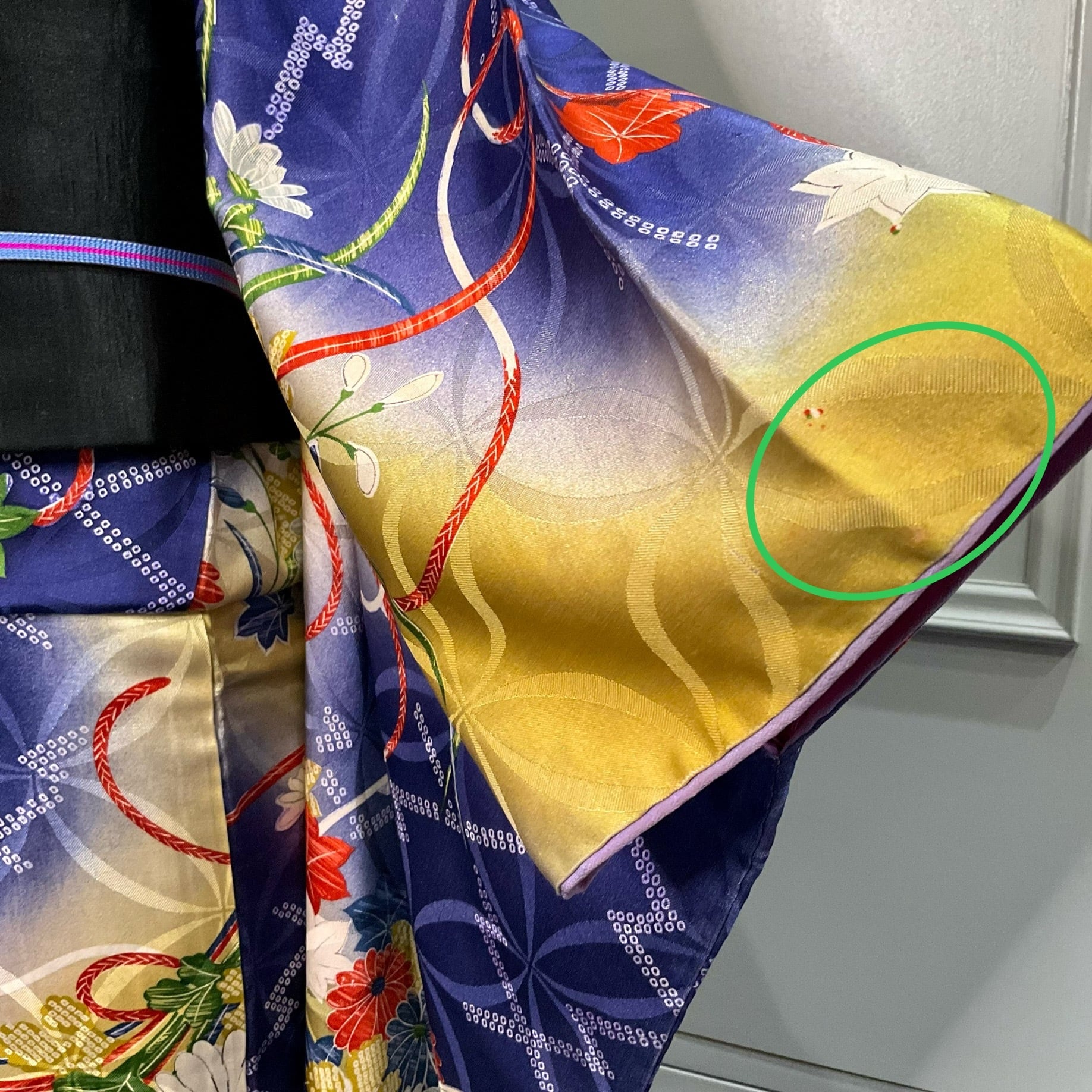 右胸、上前衽辺り、左袖口、左後ろ裾に小シミ。