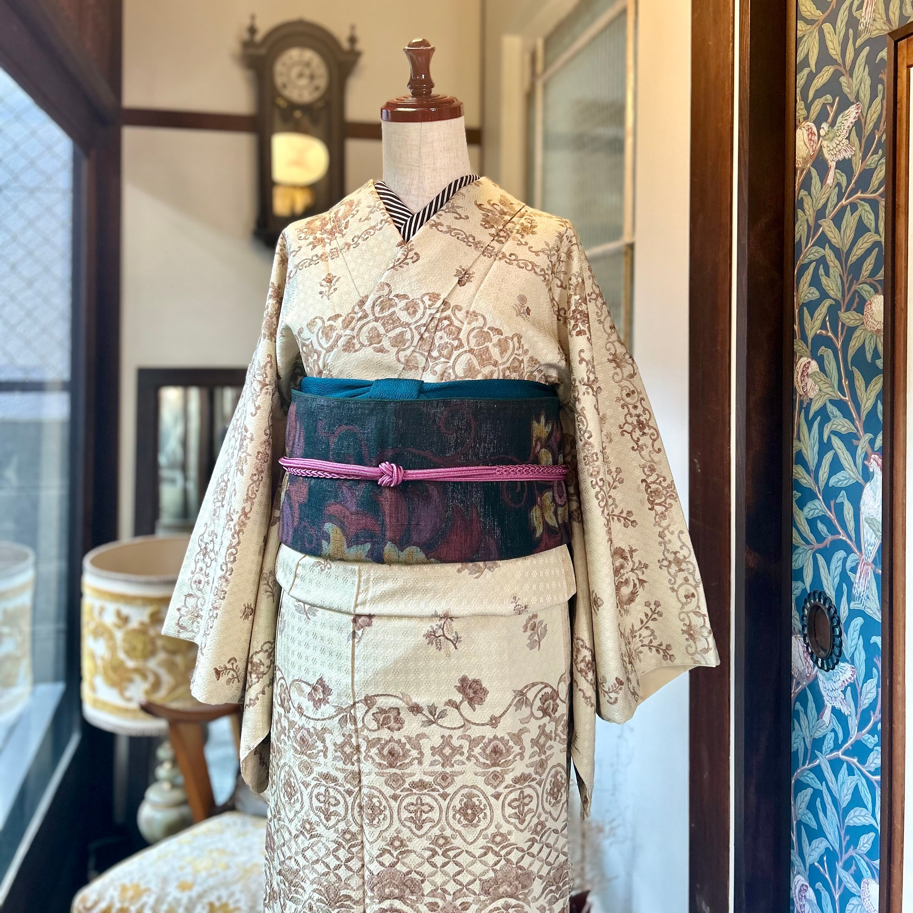 大柄で少しかわいらしい唐花は、ピリッと辛めの地色に映え、コーディネートの幅も広く使えそうですね✨️