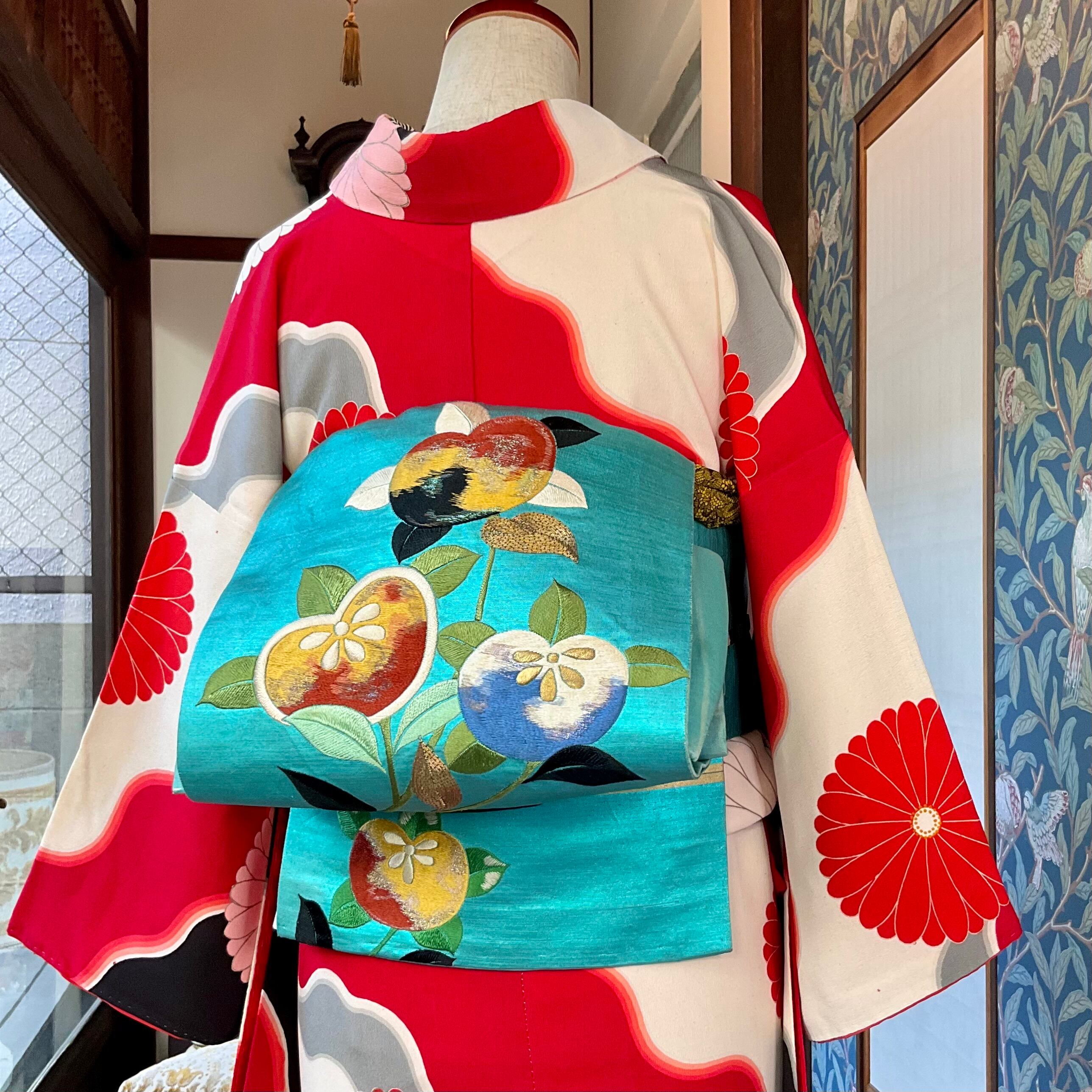 アンティークの小紋だけでなく、アンティークの付下げや訪問着にも華やかに合わせられそうですね♩