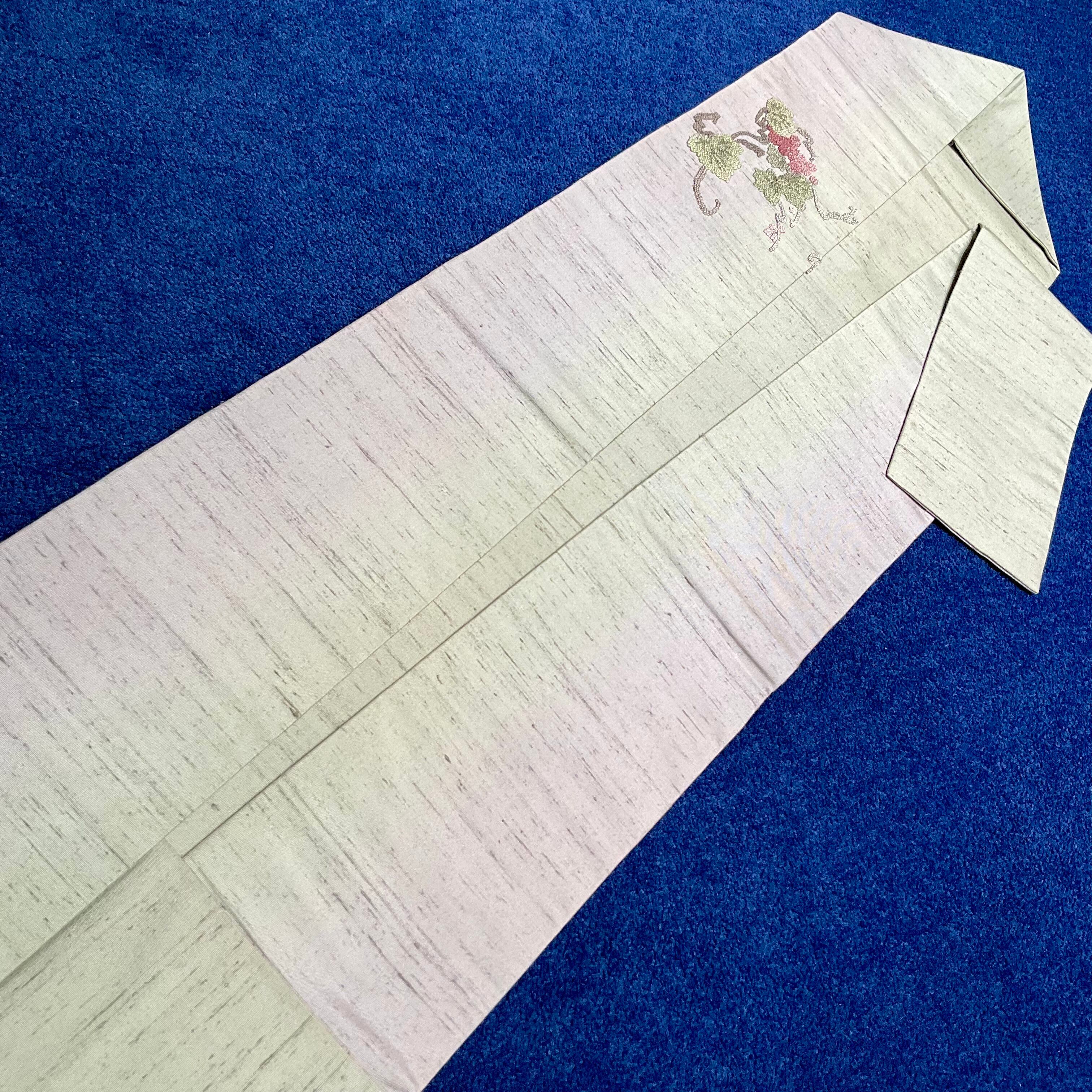 おいしいぶどう*相良刺繍 葡萄 モスグレイ 名古屋帯 A842