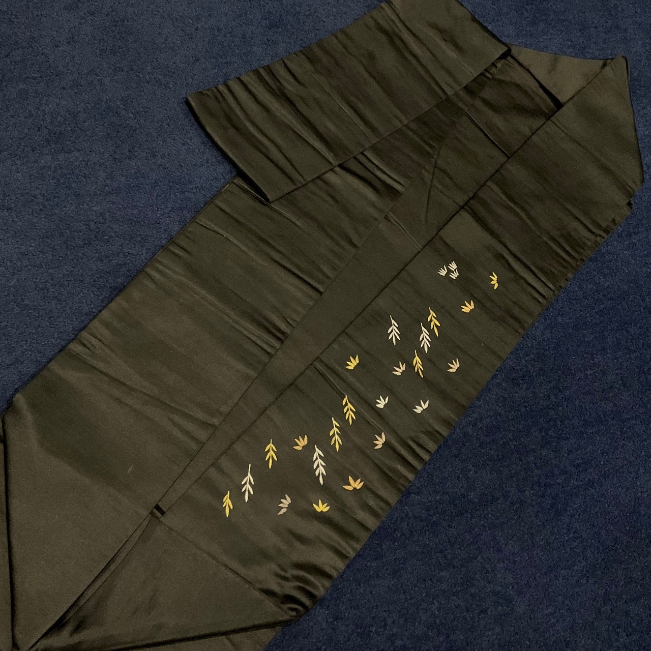 手刺繍ならではの繊細さと立体感、とろんとしっとりとした黒繻子地が、アンティークならではの上品さを醸し出していますね♡