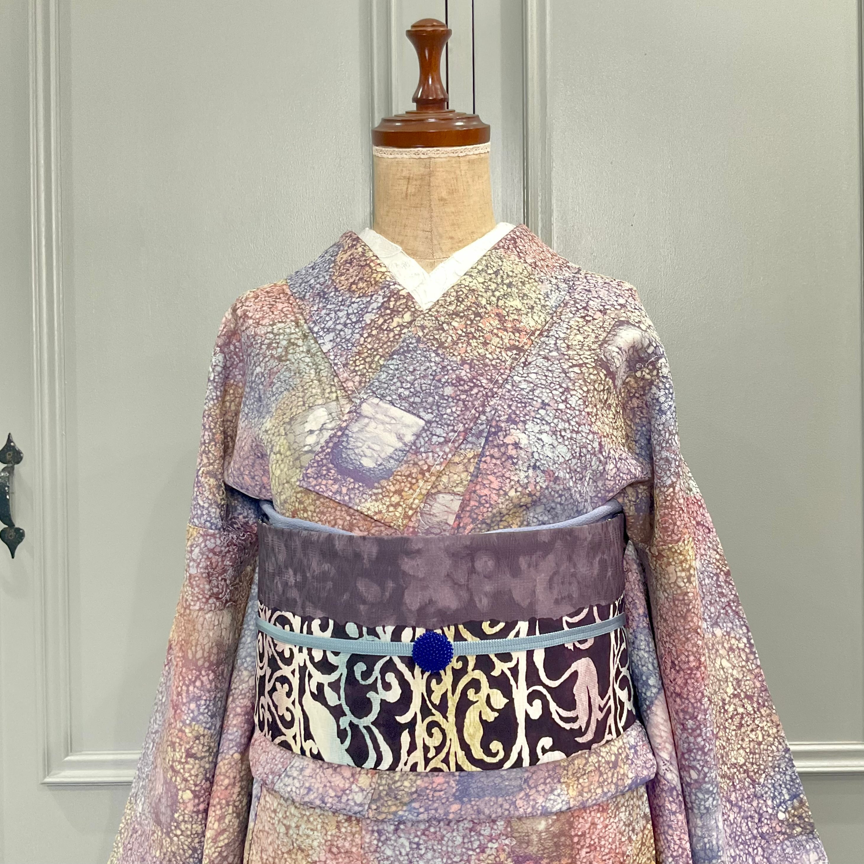 ○合わせた着物とオリジナル帯揚げスモークブルー、オリジナル三分紐ブルーグレー×ホワイトはweb shop掲載品です♪