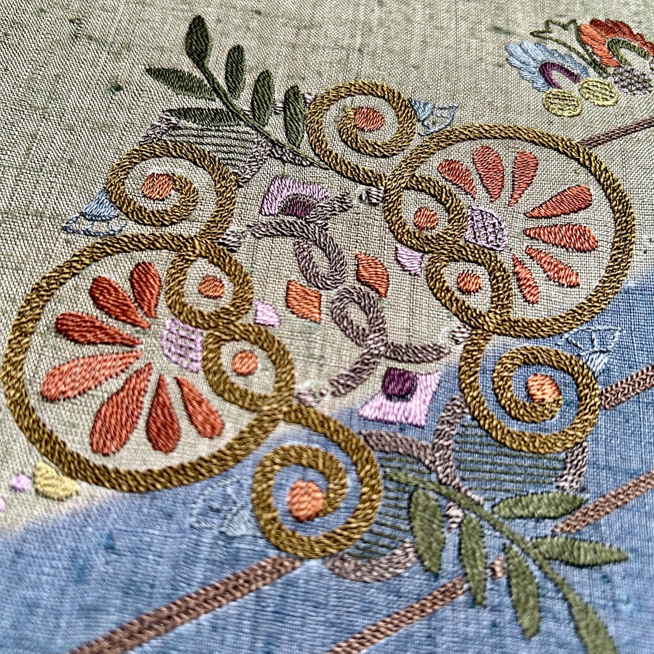風合い豊かな紬地に、細やかな刺繍で施された模様は彩り豊かでかわいらしく、ほっこりしますね♬.*゚