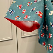 レトロポップな花模様は、落ち着いた花浅葱の地色に映える鮮やかなカラーで彩られ、気持ちが華やぎます♪♪