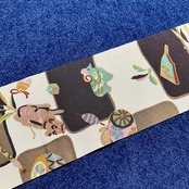 おもちゃ箱*こま 鞠 羽子板 太鼓 縮緬 名古屋帯 A901