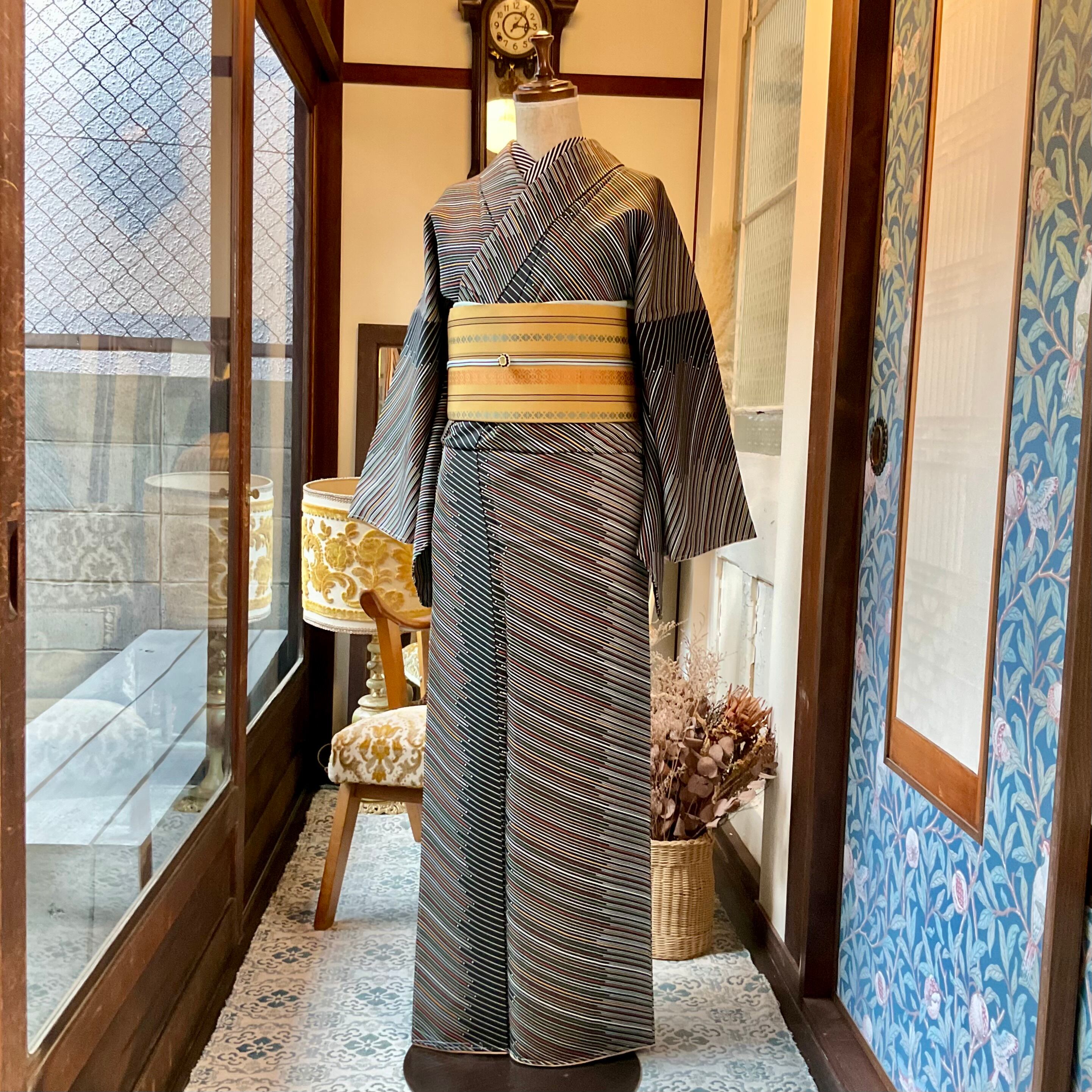 シンプルなデザインなので、帯もどんな柄でも合わせやすく、着た時にスッキリ細見えするのが良いです!