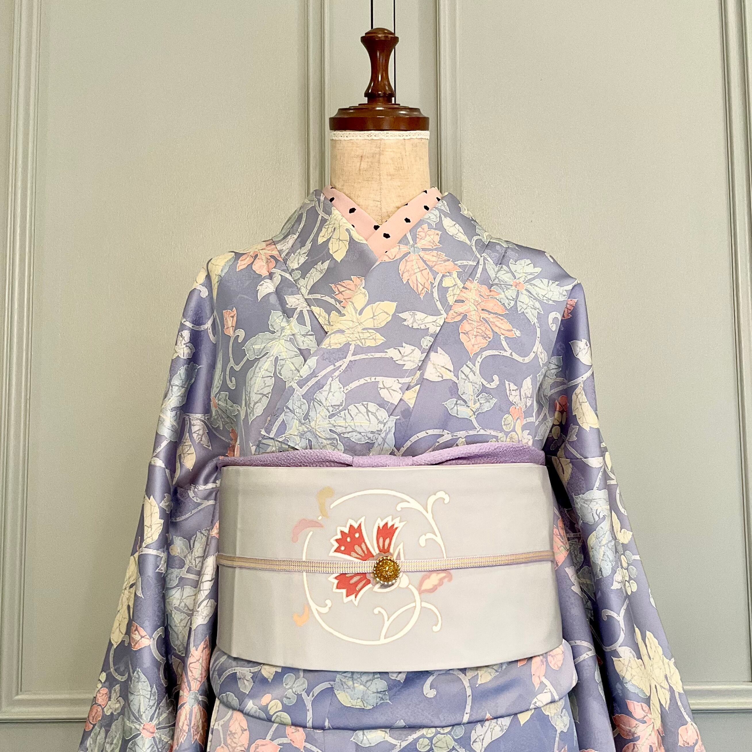 サラリとした質感の塩瀬の帯は単衣着物にも合わせられ、盛夏以外のスリーシーズン使えて便利です✨